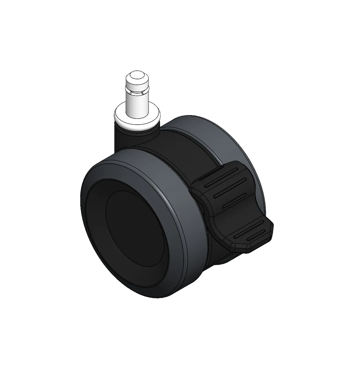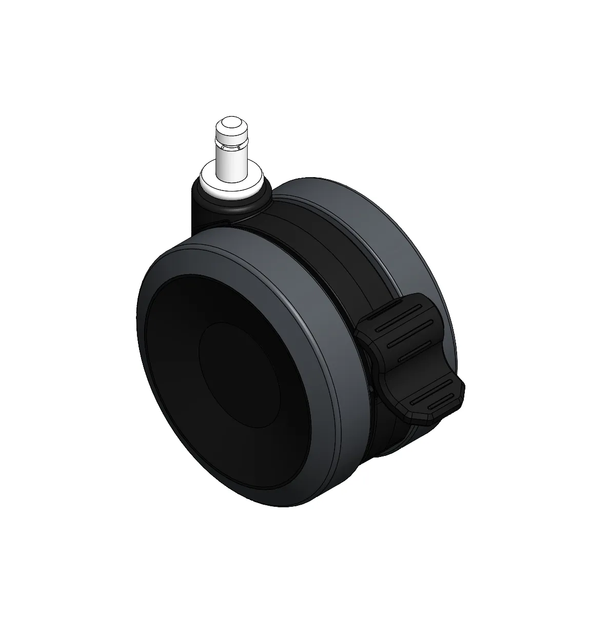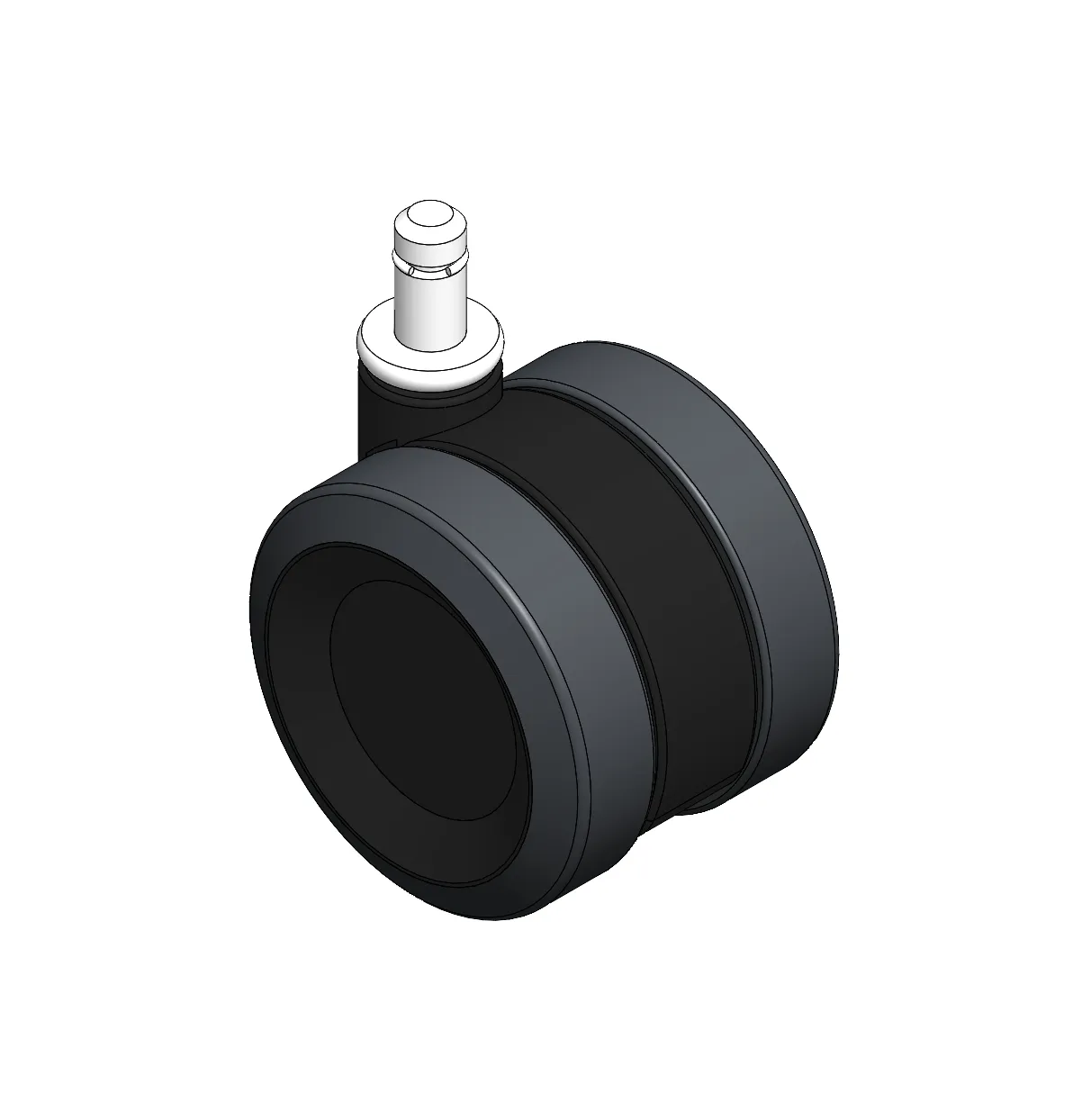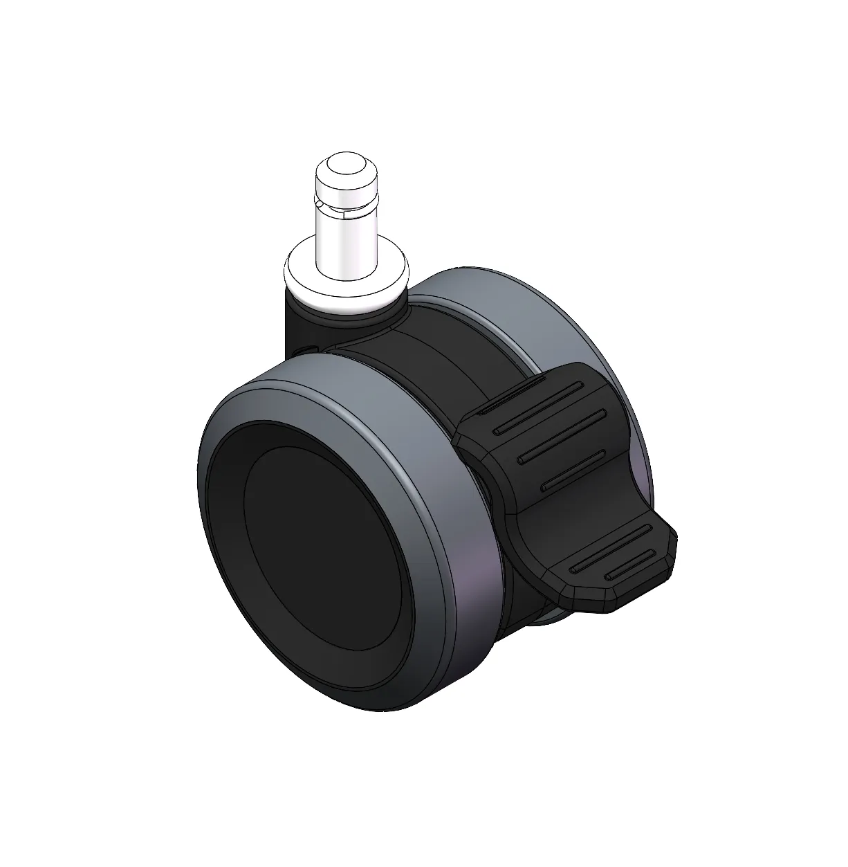 Swivel Caster, Cylindrical Stem injection-molded Fork—Ø11x22L reinforced Polypropylene Fork, insert-type Mounting Type mechanism Polypropylene (PP) core, polyvinyl chloride (PVC) tread Dark gray, Bearing—Ball Bearing.