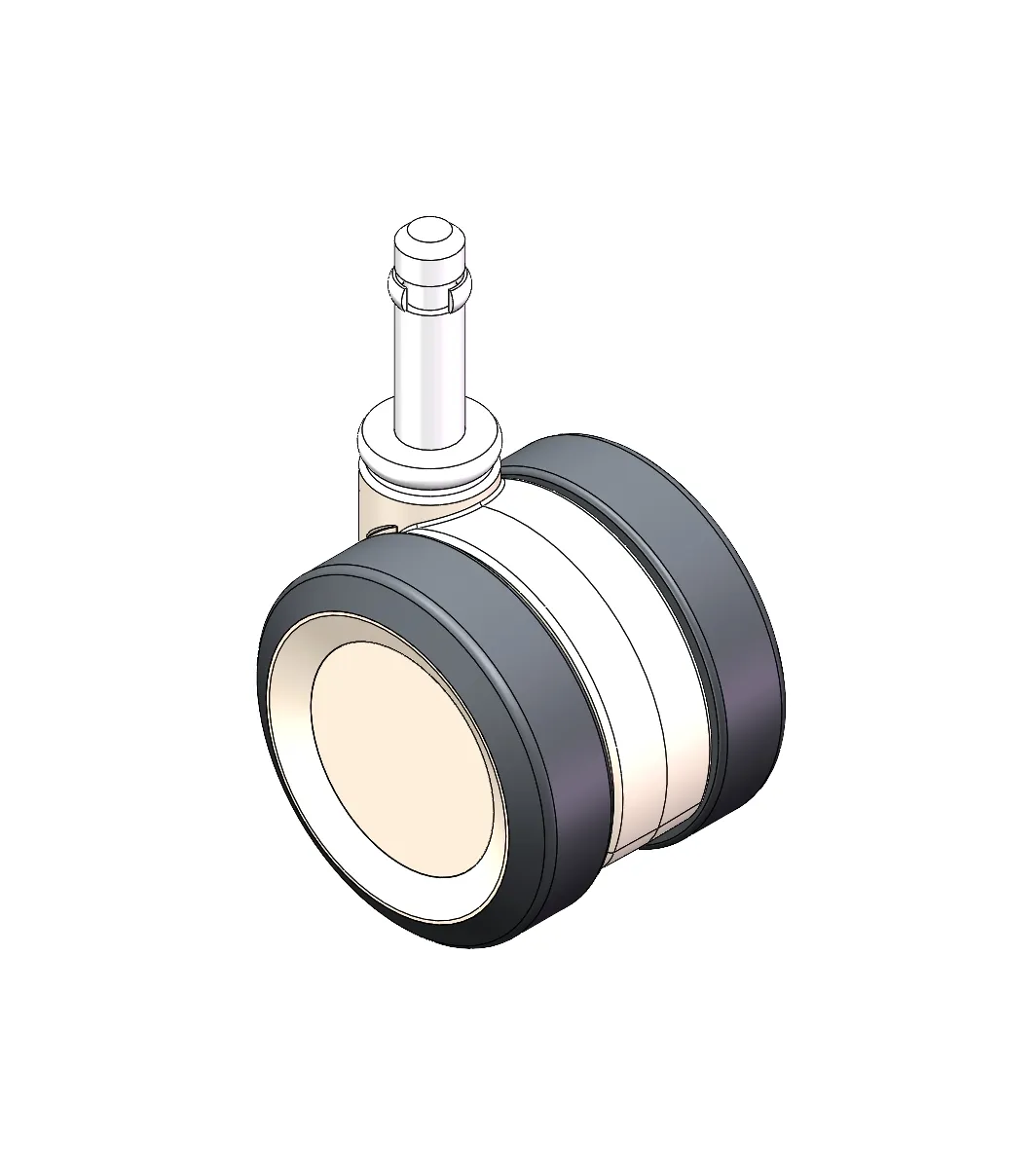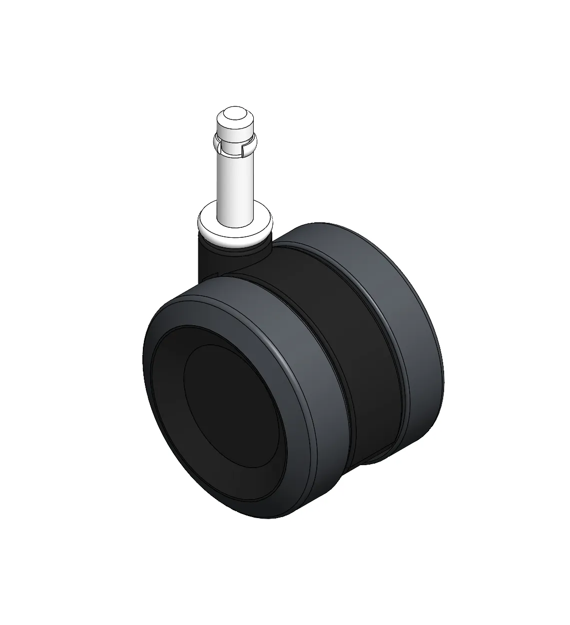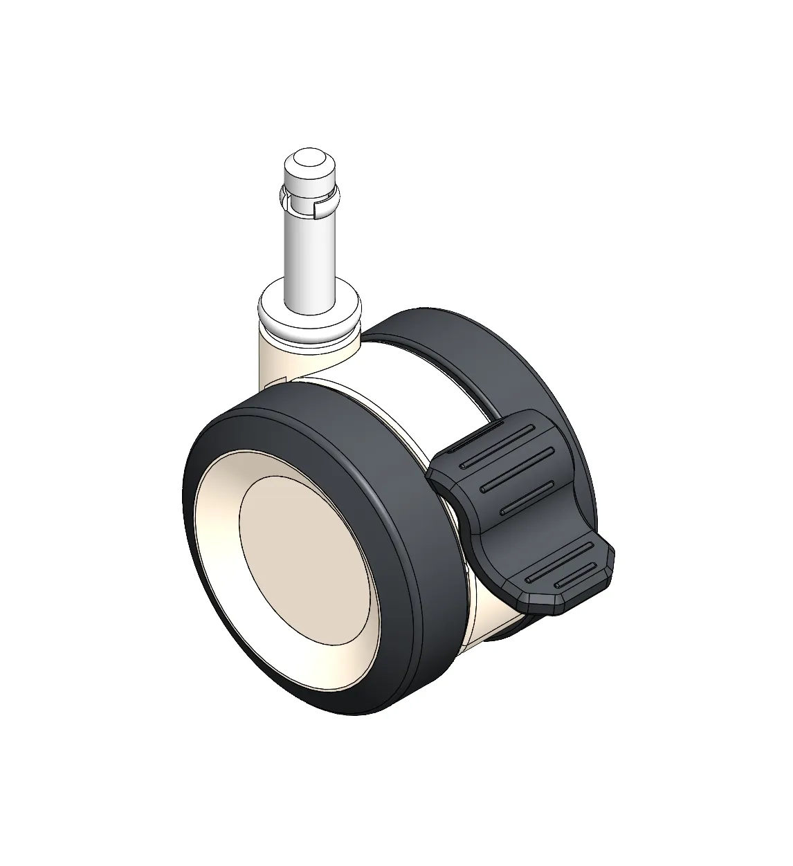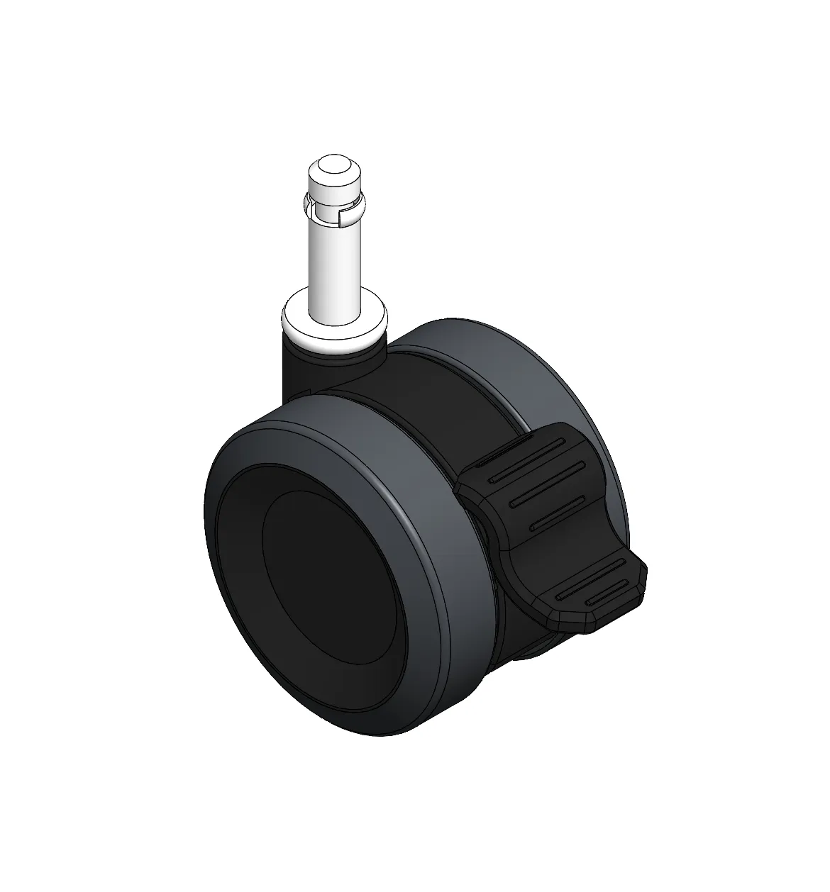 Swivel Caster, Cylindrical Stem injection-molded Fork—Ø11x38L reinforced Polypropylene Fork, insert-type Mounting Type mechanism Polypropylene (PP) core, polyvinyl chloride (PVC) tread White-dark gray, Bearing—Ball Bearing.