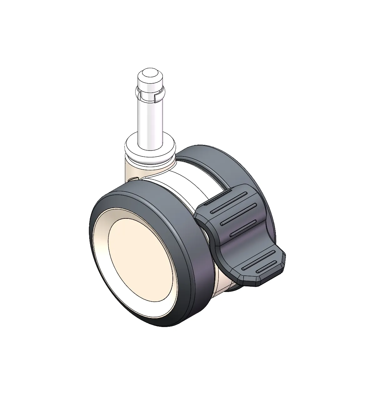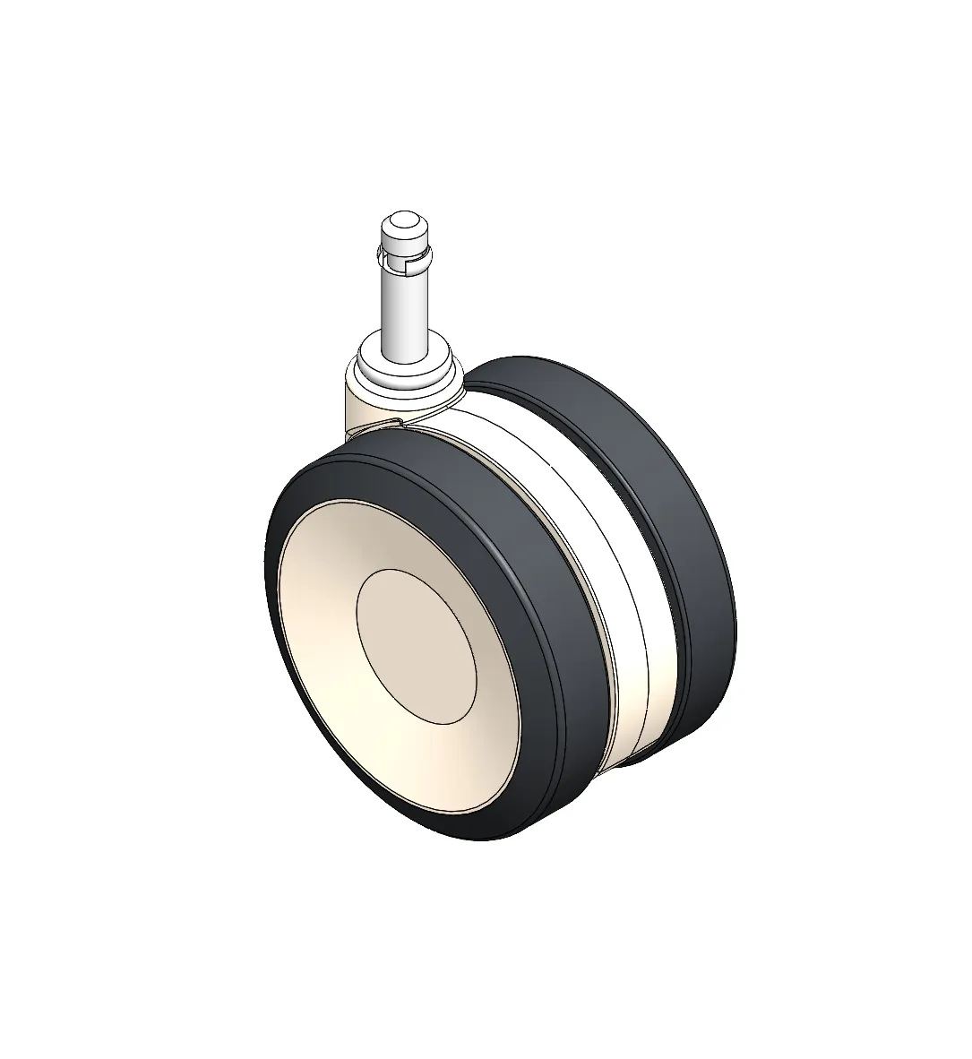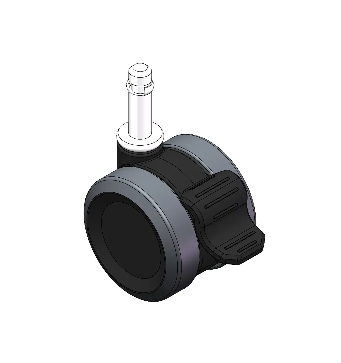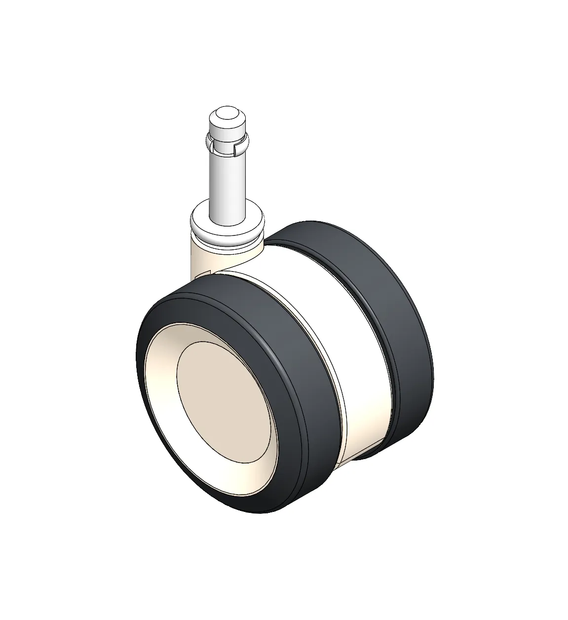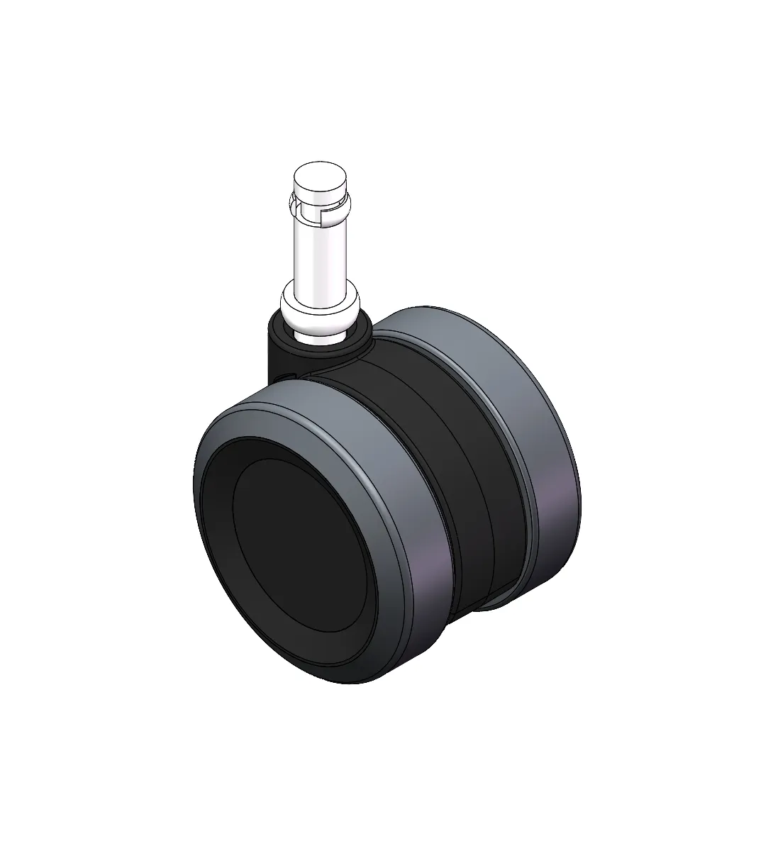 Swivel Caster, Cylindrical Stem injection-molded Fork—Ø11x38L reinforced Polypropylene Fork, insert-type Mounting Type mechanism Polypropylene (PP) core, polyvinyl chloride (PVC) tread White-dark gray, Bearing—Ball Bearing.