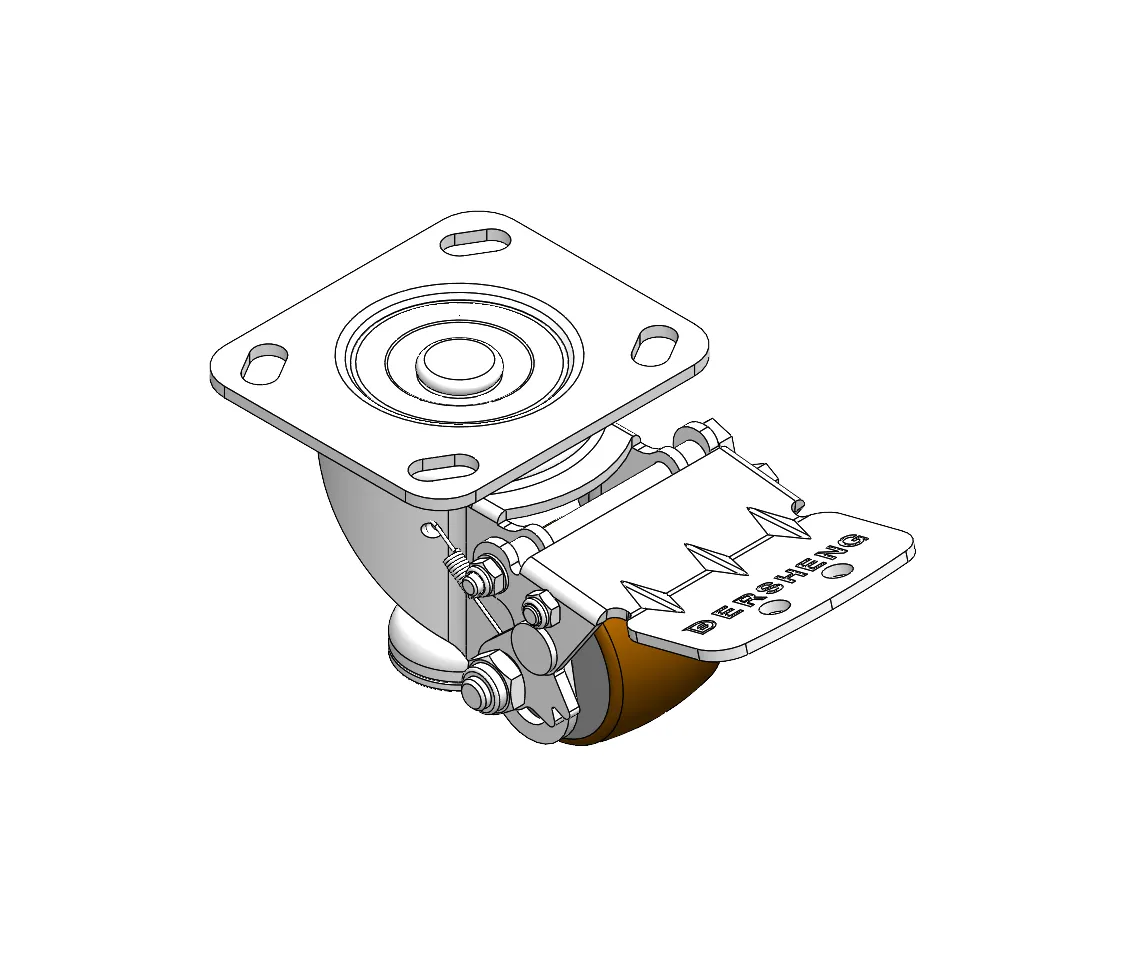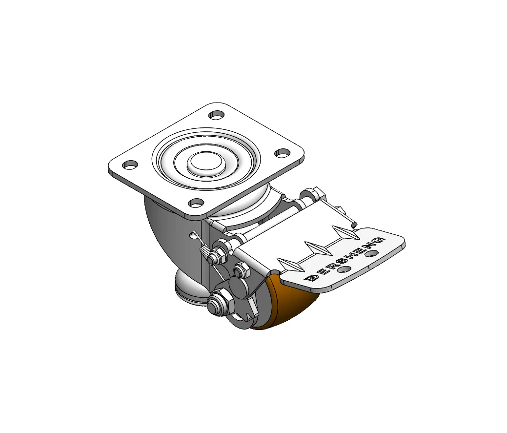 Height Adjustable Leveling Caster. Top Plate with Riveted, Stamping Fork 44.5 x 30mm (1-3/4" x 1-1/8") Bolt Hole Spacing, Long Pedal. Zine-Plated, Top Plate (4T) Mounting Type mechanism with Height Adjustable Stand. Cast Iron Wheel Center with High Quality Polyurethane tread. Brown color, Bearing with Ball Bearing.