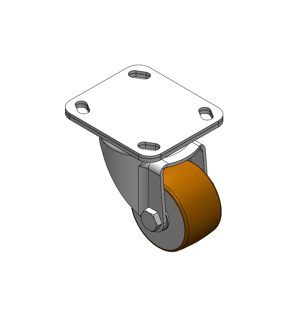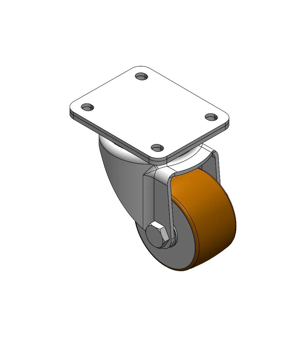 Swivel Caster with Riveted Fork and Stamping Fork with 85 x 70mm (3-3/8" x 2-3/4") Bolt Hole Spacing. Zine-Plated, Mounting Type - Top Plate. Cast Iron Wheel Center with High Quality Polyurethane tread. Brown color, Bearing with Ball Bearing.