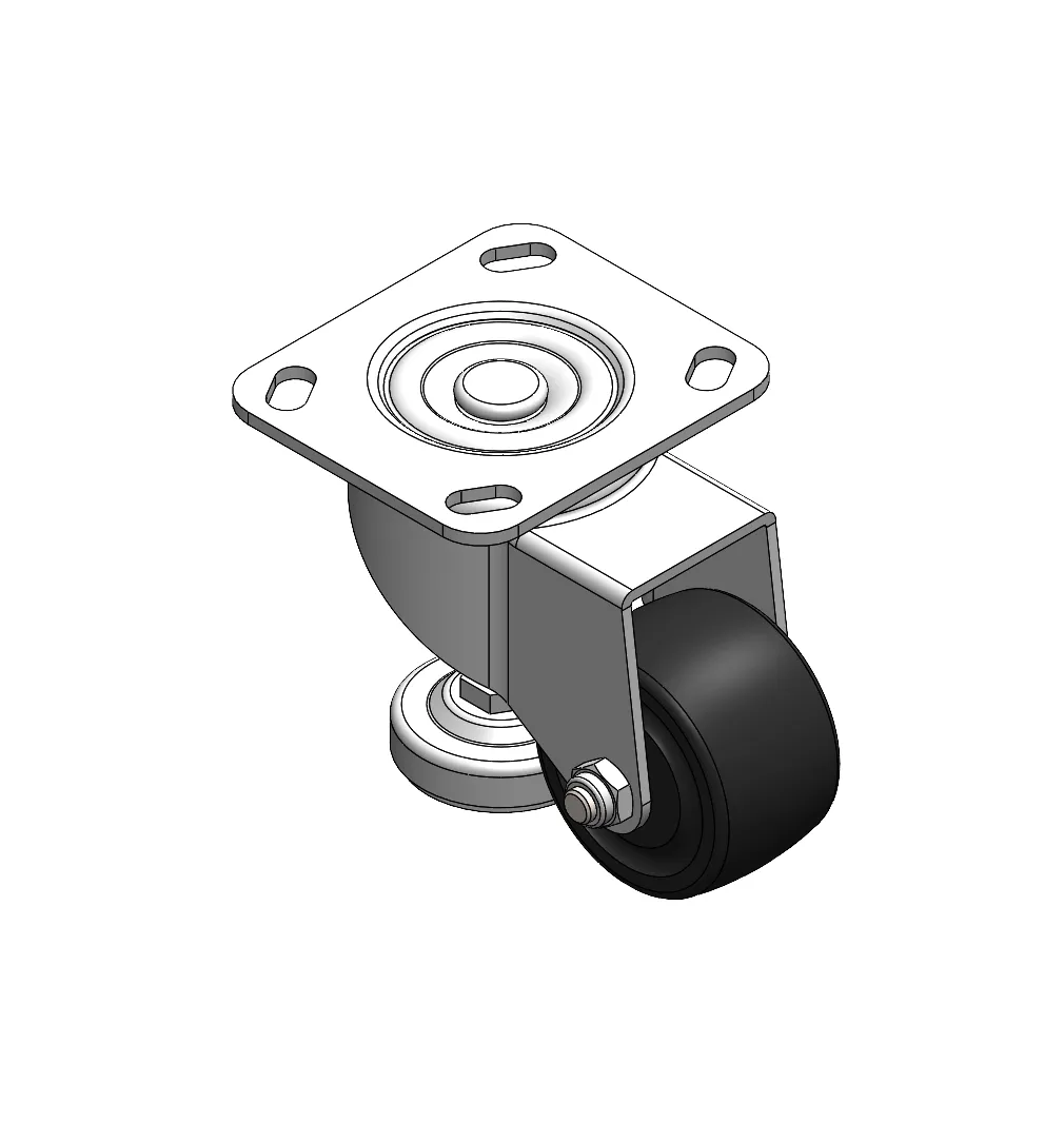 Height Adjustable Leveling Caster, Top Plate with Riveted, Fork 44.5 x 30mm (1-3/4" x 1-1/8") Bolt Hole Spacing, Long Pedal Zine-Plated, Mounting Type - Top Plate, Height Adjustable Stand Reinforced Polypropylene and tread Black, Bearing with Ball Bearing.