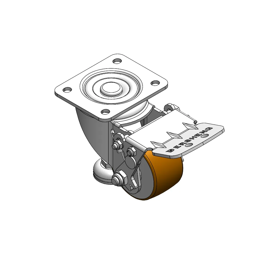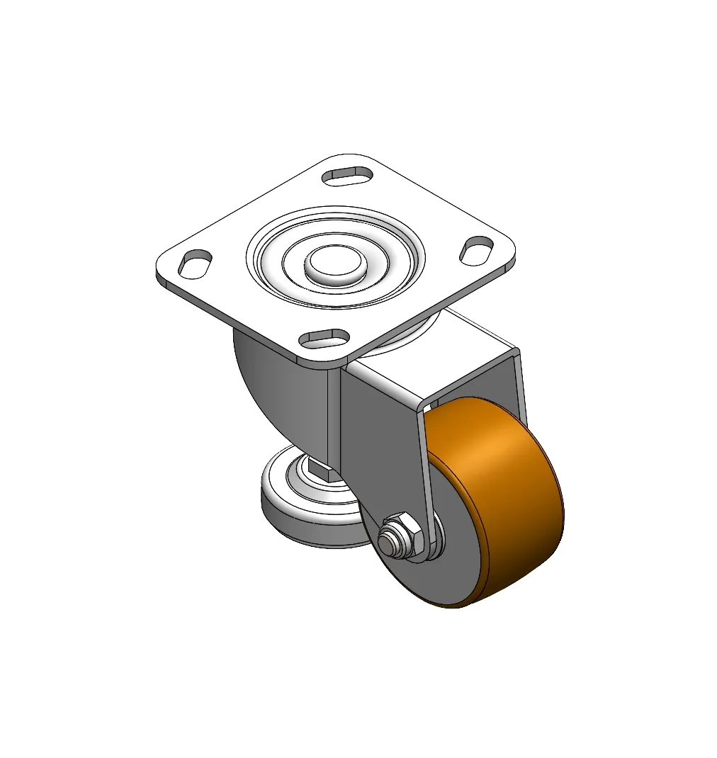 Swivel Caster with Riveted Fork and Stamping Fork with D-shaped hole. Zine-Plated, Fork-mounted Mounting Type with Height Adjustable Stand. Cast Iron Wheel Center with High Quality Polyurethane tread. Brown color, Bearing with Ball Bearing.