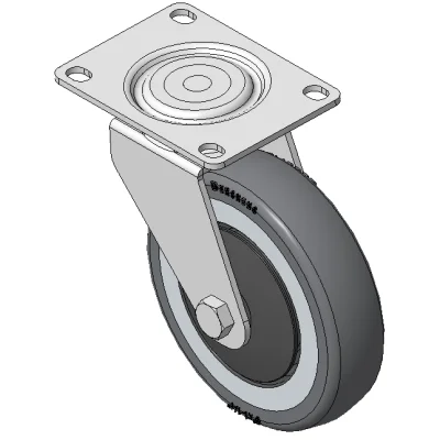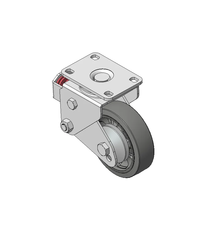 Spring-loaded Caster with Welded Caster Fork Zine-Plated, Mounting Type - Top Plate, 75x45 Bolt Hole Spacing Cast Iron Wheel Center with High Quality Polyurethane tread Pearl-finish dark gray, Bearing—Ball Bearing