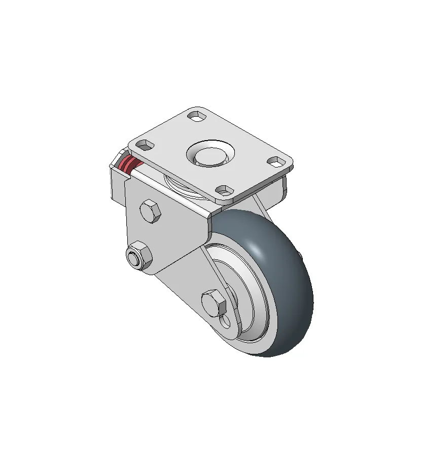 Spring-loaded Caster with Welded Caster Fork Zine-Plated, Mounting Type - Top Plate, 75x45 Bolt Hole Spacing Cast Iron Wheel Center with High Quality Polyurethane tread, aluminum gray Bearing—Ball Bearing