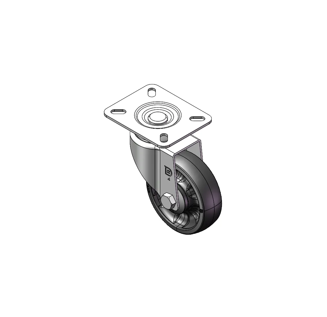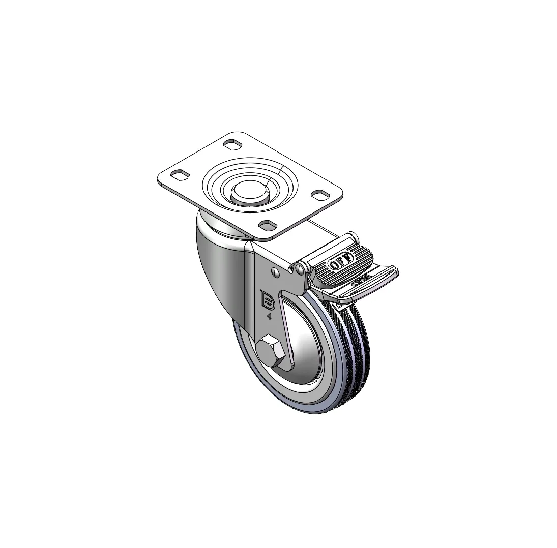 Castors with Total Brake locking system. Top Plate Riveted Fork - 75 x 45 mm (3" x 1-3/4") Bolt Hole Spacing Surface Zine-Plated, Top Plate Mounting Type Impact resistant High-quality Impact Resistance Polypropylene Wheel Center,High-Quality Thermoplastic Rubber (TPR) Wheel Tread Gray, wheels - Plain Bearing