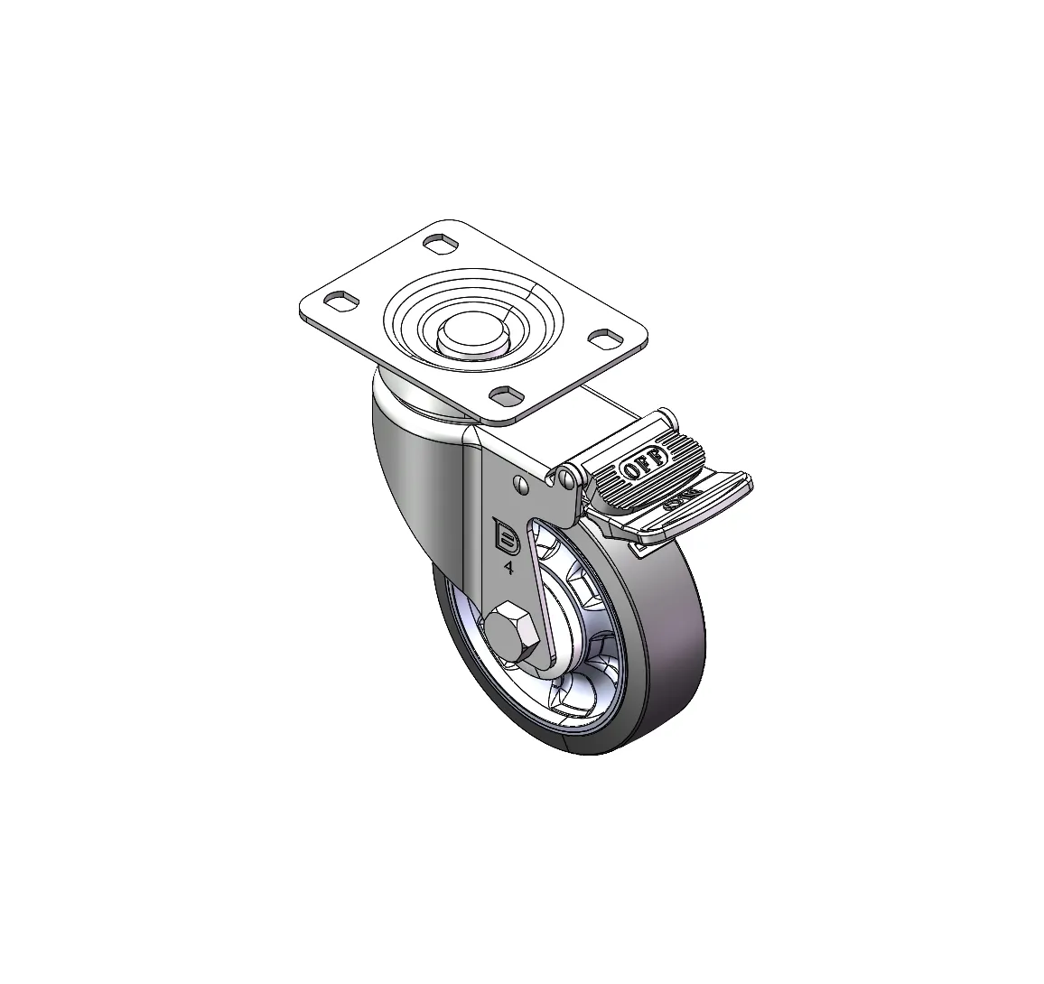 Swivel Caster, Single Bolthole Stamping Fork - ∅10.5 Extended control lever surface, Mounting Type - Single Bolthole device Aluminum core, High Quality Polyurethane Wheel Tread Gray, Bearing - Ball Bearing.