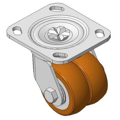 Swivel Caster, Welded Caster Fork Extended control lever surface, Top Plate Mounting Type, Hole spacing 80 x 60 Cast Iron Wheel Center, High Quality Polyurethane Wheel Tread, Cast Iron black Bearing—special Ball Bearings to reduce Rolling Resistance ZQPU double wheels, Ergonomic design, easier to start and turn