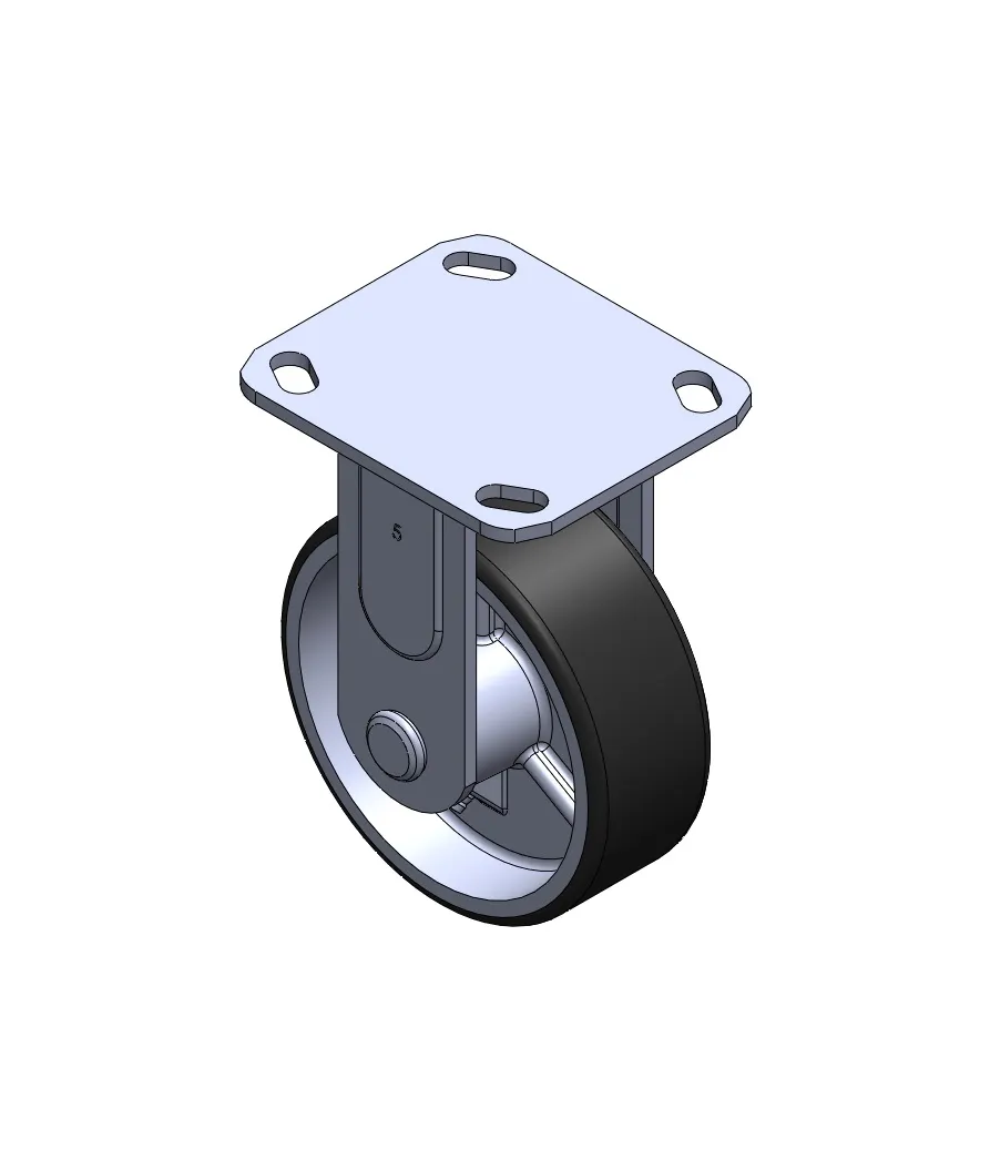 Rigid Caster with Welded Caster Fork Zine-Plated, Mounting Type - Top Plate Cast Iron core with High Quality Polyurethane Wheel Tread Black, Bearing—Annual Ball Bearing.
