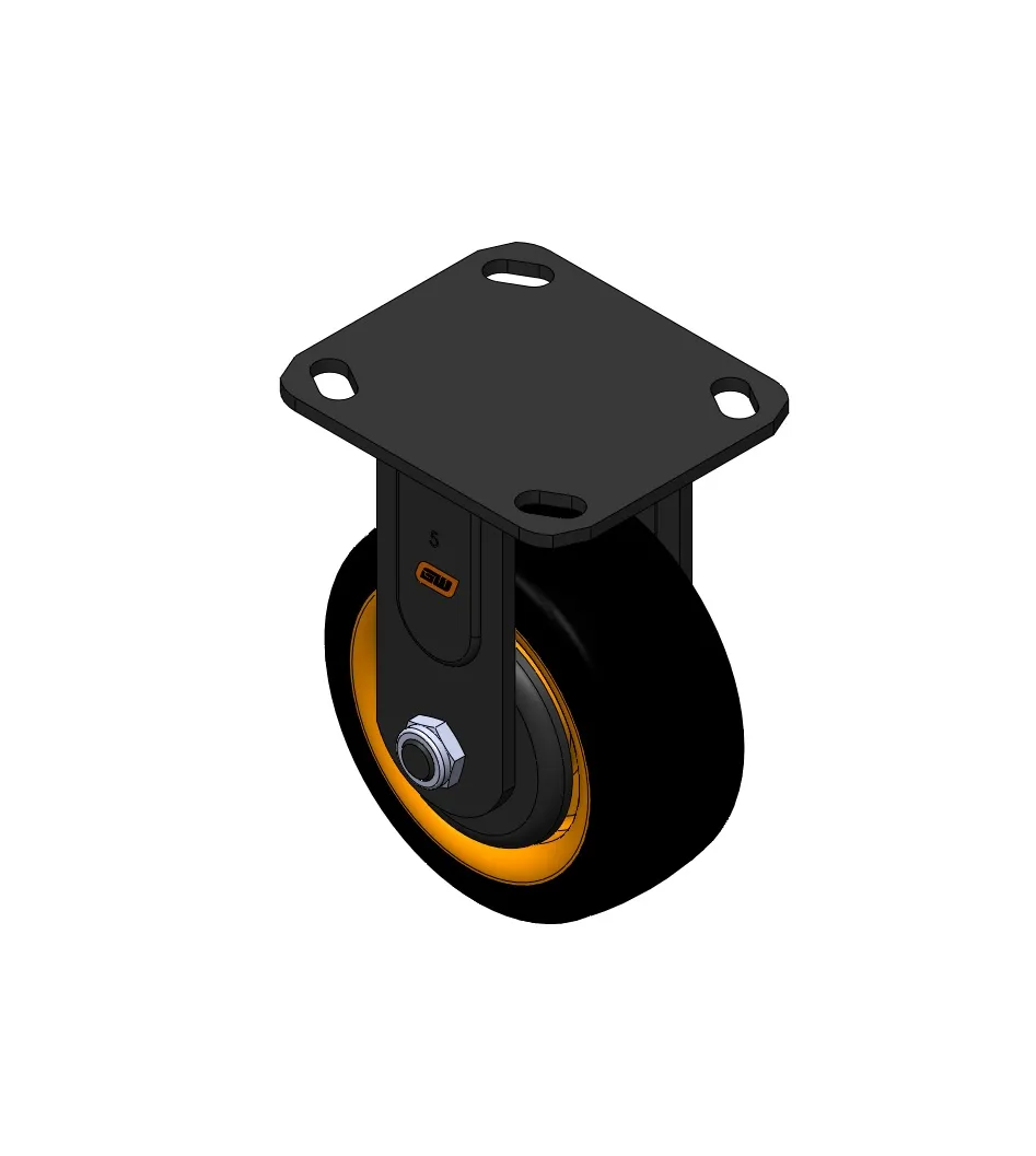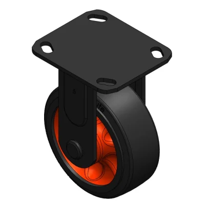 Rigid Caster with Welded Caster Fork Electrodeposited surface, Mounting Type - Top Plate High-Quality Impact-Resistant Polypropylene core with High-Quality Reinforced Polypropylene Rubber (TPR) Wheel Tread Orange-black, Bearing—Ball Bearings.