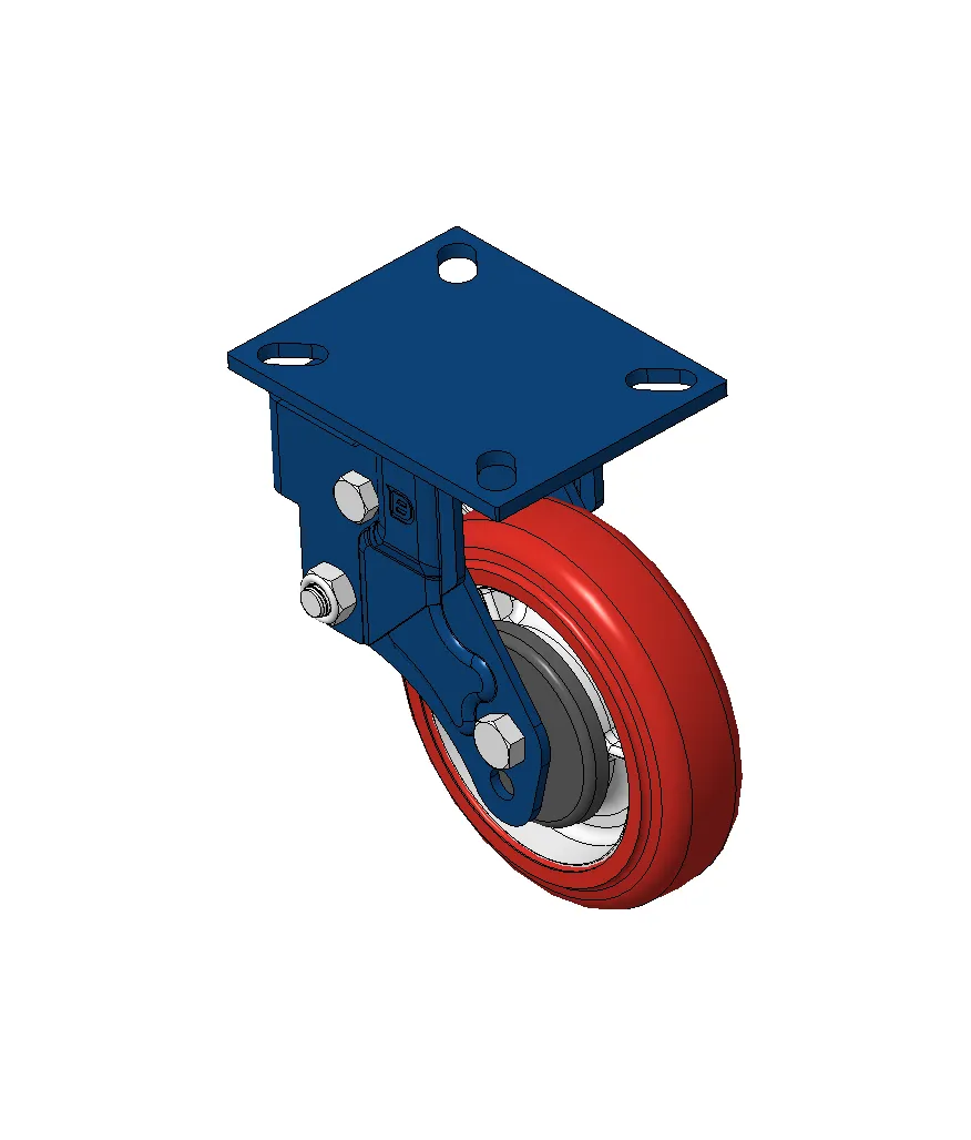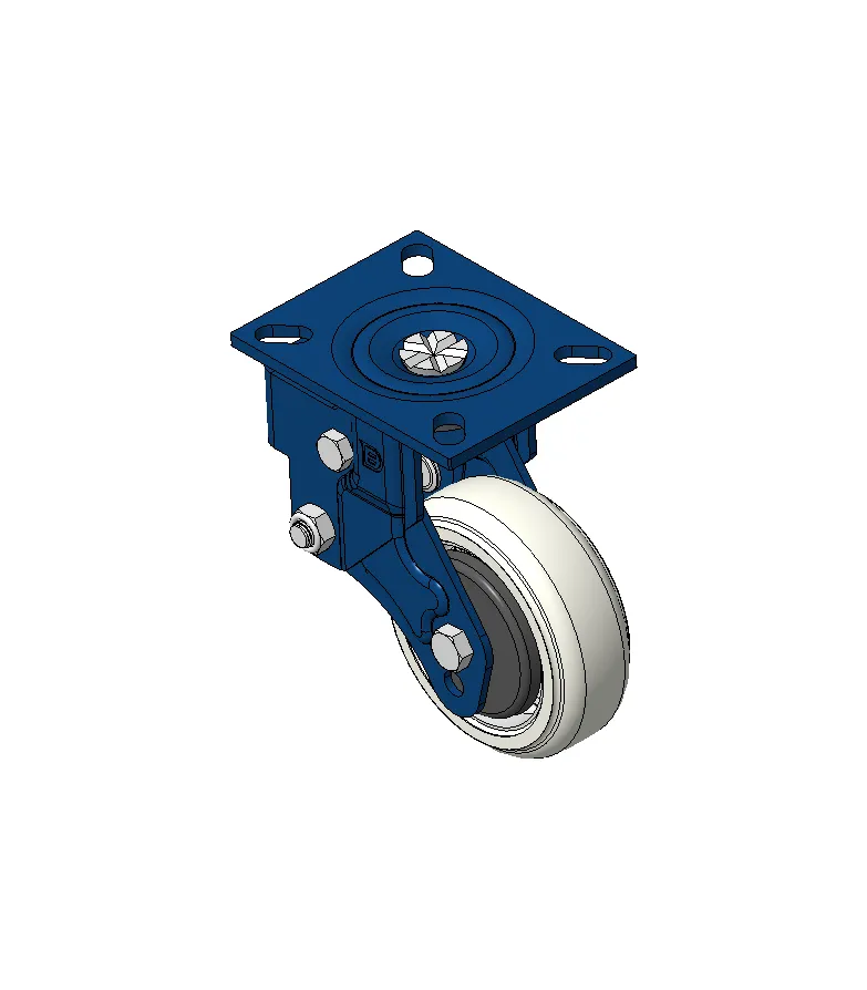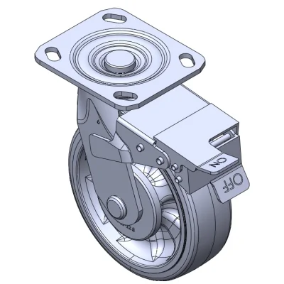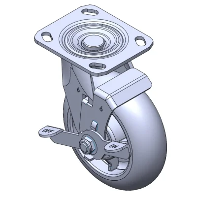 Casters with Side Brakes and With locking system. Welded Caster Fork. Zine-Plated. Mounting Type - Top Plate. High-Quality Impact-Resistant Polypropylene Wheel Center with High-Quality Reinforced Polypropylene Rubber (TPR) Wheel Tread. Gray color. Bearings—Annual Ball Bearing.