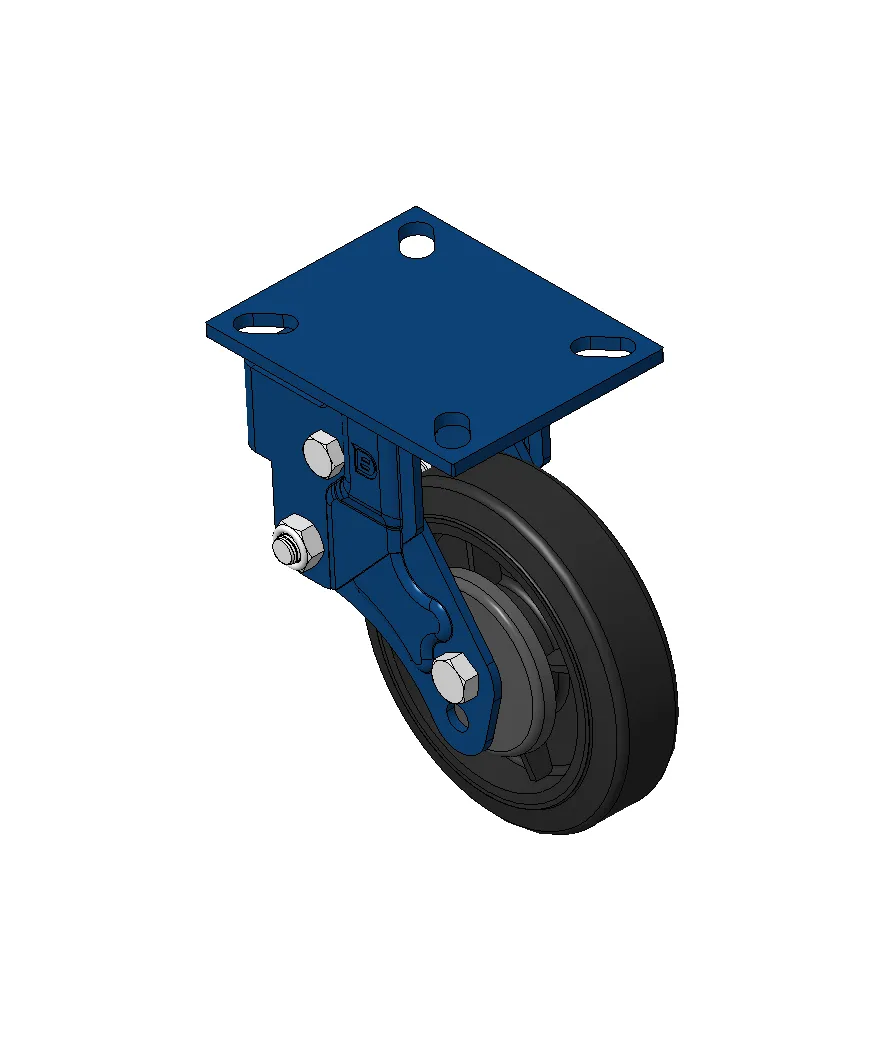 Rigid Caster, Welded Caster Fork, blue-painted finish