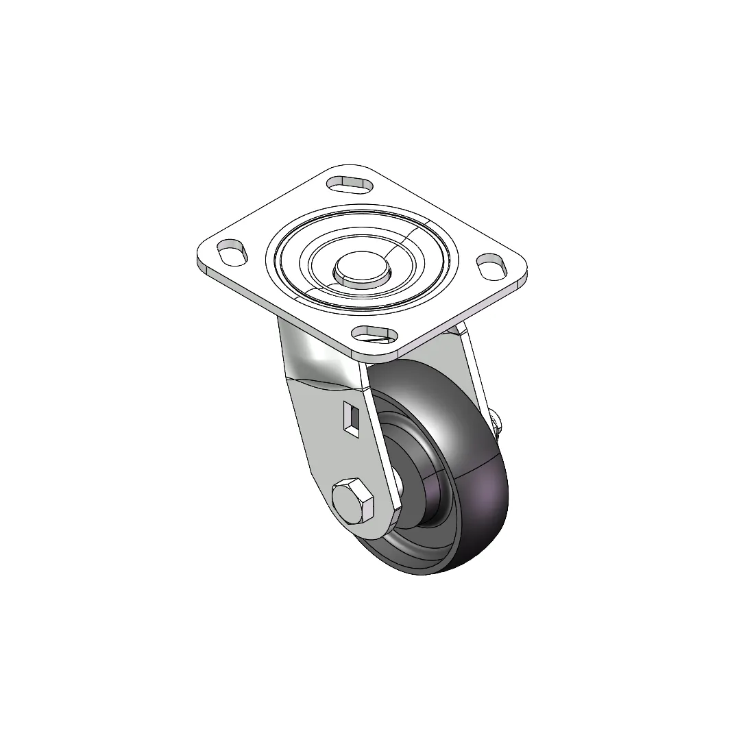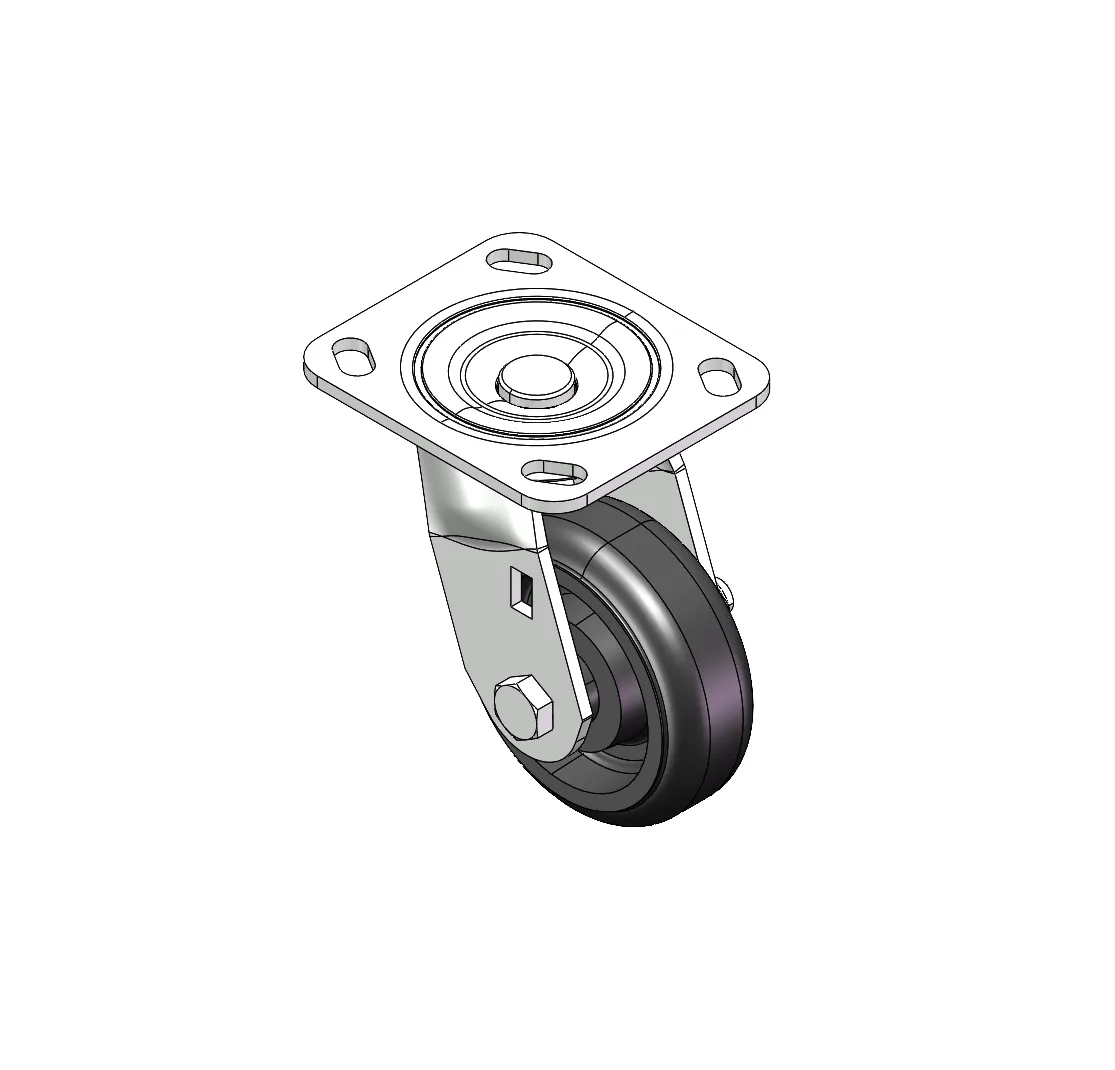 Swivel Caster, Top Plate Riveted and Stamping with 85 x 70mm (3-3/8" x 2-3/4") Bolt Hole Spacing Mounting Type. Zine-Plated, Top Plate (4.5T) Mounting Type mechanism. Cast Iron Wheel Center, High-Quality Resilient Rubber tread. Iron black, Bearing—Ball Bearing.
