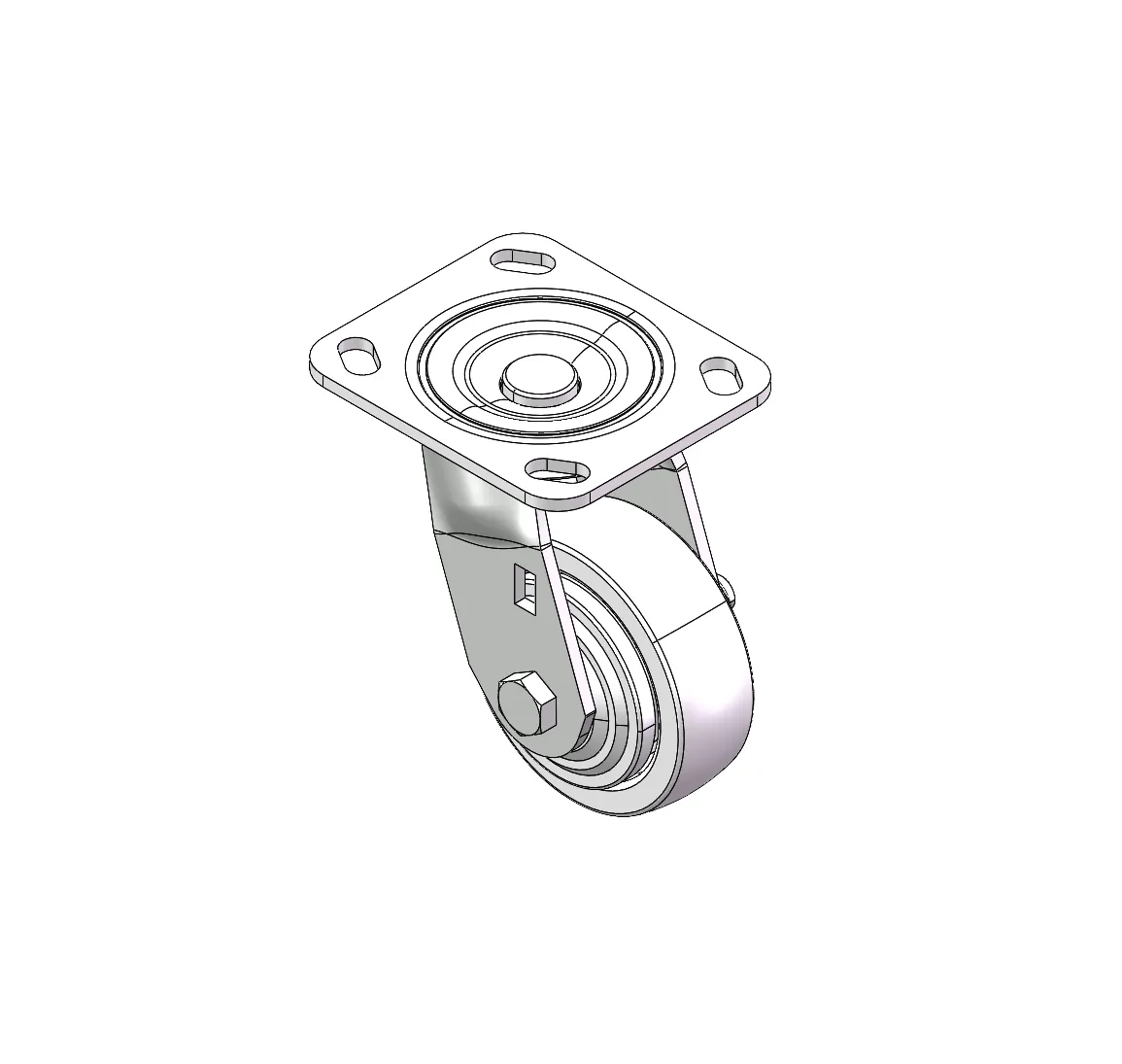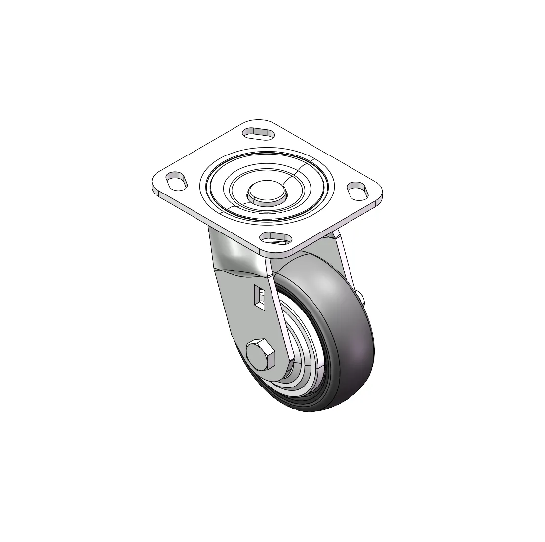 Swivel Caster, Top Plate Riveted with Fork – 85 x 70mm (3-3/8" x 2-3/4") Bolt Hole Spacing