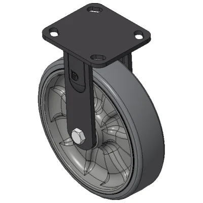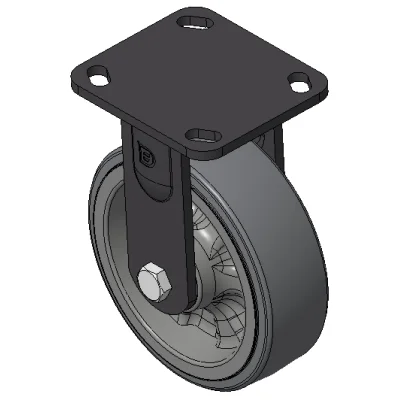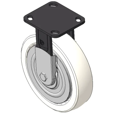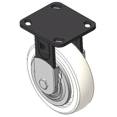 Rigid Casters, Welded Caster Fork, black painted finish. Base plate Mounting Type, 85x70mm Bolt Hole Spacing. Reinforced Polypropylene (PA6), natural finish. Bearings—Ball Bearings, with metal caps.