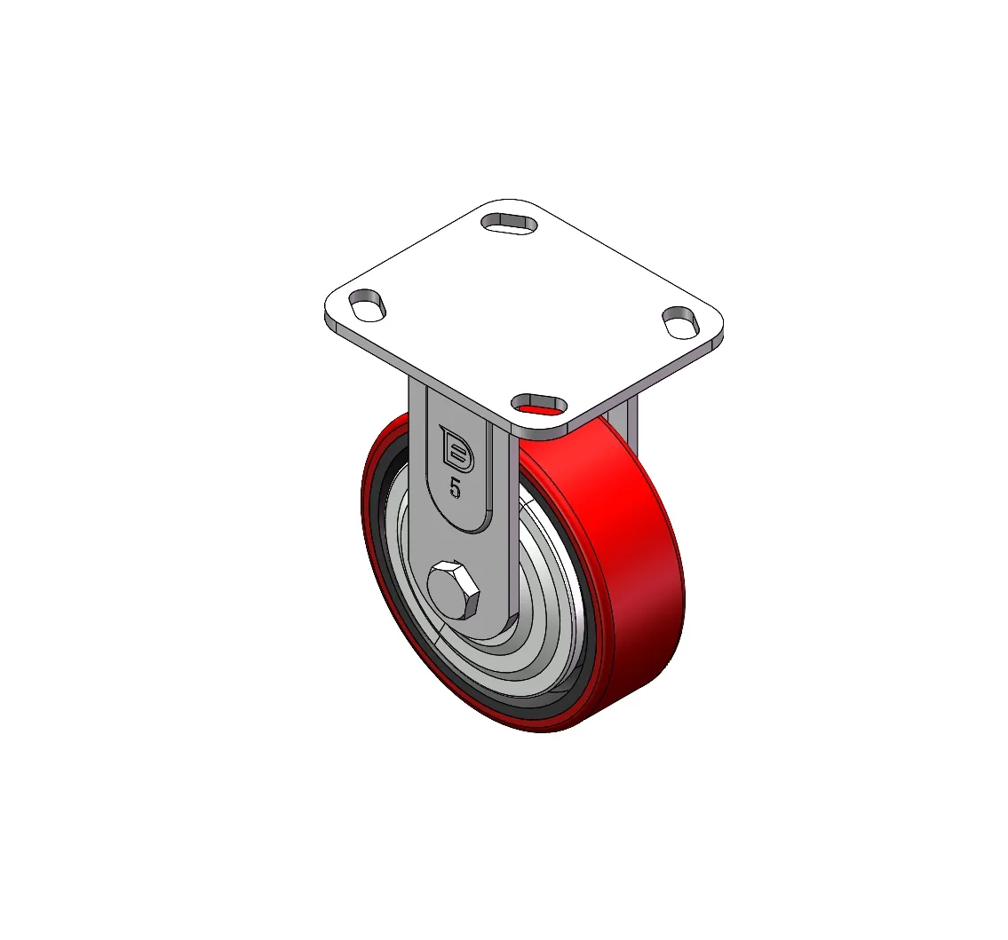 Rigid Caster, Welded Caster Fork 85 x 70mm (3-3/8" x 2-3/4") Bolt Hole Spacing Zine-Plated, Top Plate (4.5T) Mounting Type system Cast Iron Wheel Center with High Quality Polyurethane tread Red Cast Iron finish, Ball Bearing.