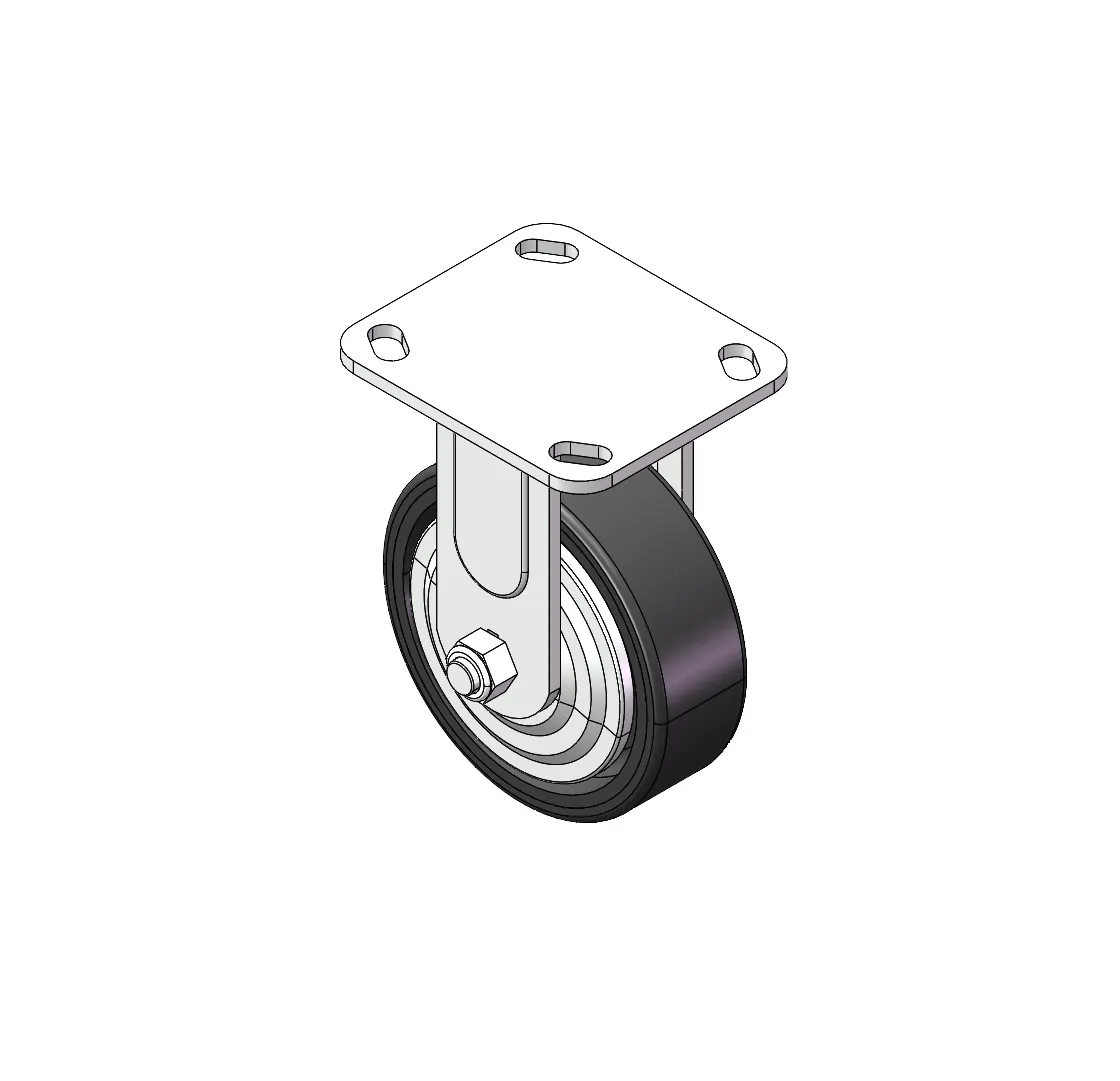 Rigid Caster, Welded Caster Fork 85 x 70mm (3-3/8" x 2-3/4") Bolt Hole Spacing Zine-Plated, Top Plate (4.5T) Mounting Type system Cast Iron Wheel Center with High Quality Polyurethane tread Iron black, Bearing with Ball Bearing.