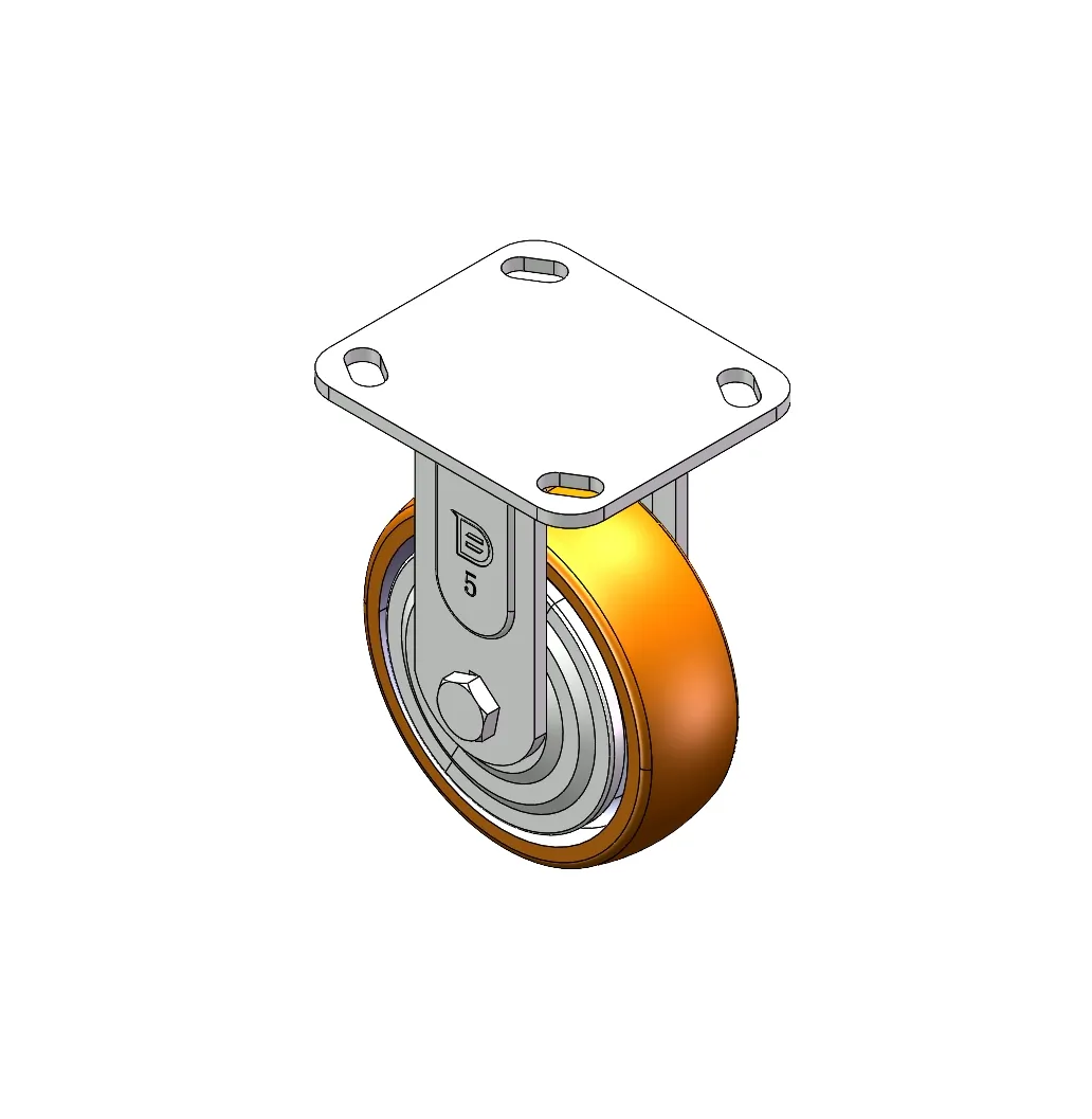 Rigid Caster, Welded Caster Fork with 85 x 70mm (3-3/8" x 2-3/4") Bolt Hole Spacing cutout Zine-Plated, Top Plate (4.5T) Mounting Type system Cast Iron Wheel Center with High Quality Polyurethane tread Iron brown, Bearing with Ball Bearing.