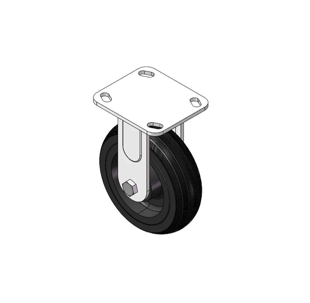 Rigid Caster, Welded Caster Fork 85 x 70mm (3-3/8" x 2-3/4") Bolt Hole Spacing Zine-Plated, Top Plate (4.5T) Mounting Type system Cast Iron Wheel Center with High-Quality Resilient Rubber tread Iron black, Bearing with Ball Bearing.