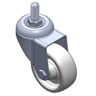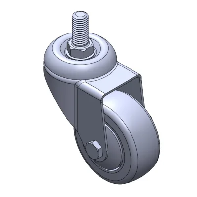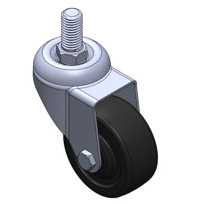 Bánh xe di động, chân đế dập ren – 1/2"-12 răng; bề mặt chống rung, lắp đặt bằng ren; lõi bánh xe bằng polypropylene chịu va đập, bề mặt bánh xe bằng chất đàn hồi nhiệt dẻo (TPR); màu xám, ổ bi bánh xe – ổ bi cầu chính xác.