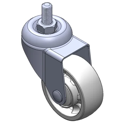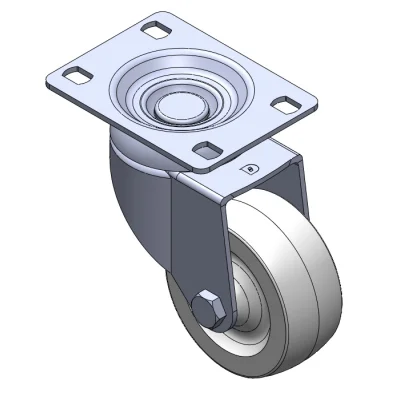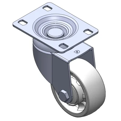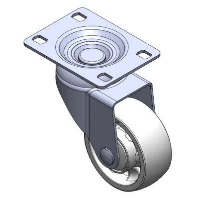 Bánh xe di động, đế gắn bằng đinh tán và dập khuôn – thiết kế đục lỗ chất lượng cao. Chống rung bề mặt, lắp đặt đế. Lõi và vành bánh xe bằng nhựa nhiệt dẻo gia cường. Màu trắng. Vòng bi bánh xe – vòng bi cầu chính xác.