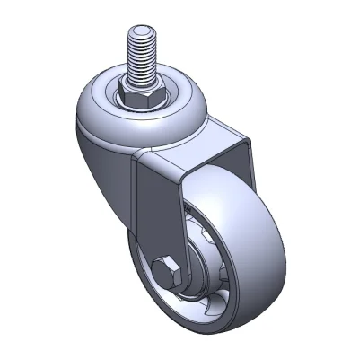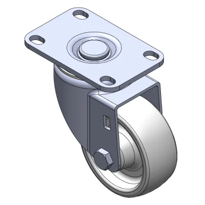 Bánh xe di động, chân đế có ren dập khuôn – ren 1/2"-12; chống rung bề mặt, lắp đặt bằng tấm đế; lõi và vành bánh xe bằng nhựa nhiệt dẻo; màu trắng; ổ bi bánh xe – ổ bi cầu chính xác.