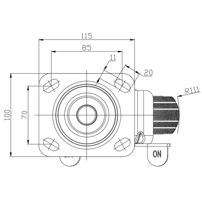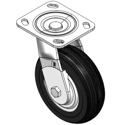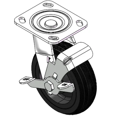 Bánh xe phanh bên có hệ thống khóa. Đế bánh xe có giá đỡ dập đinh tán và lỗ chữ D.