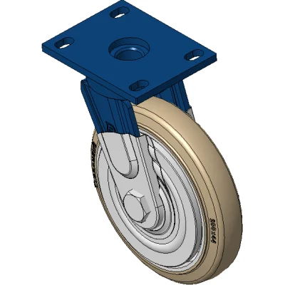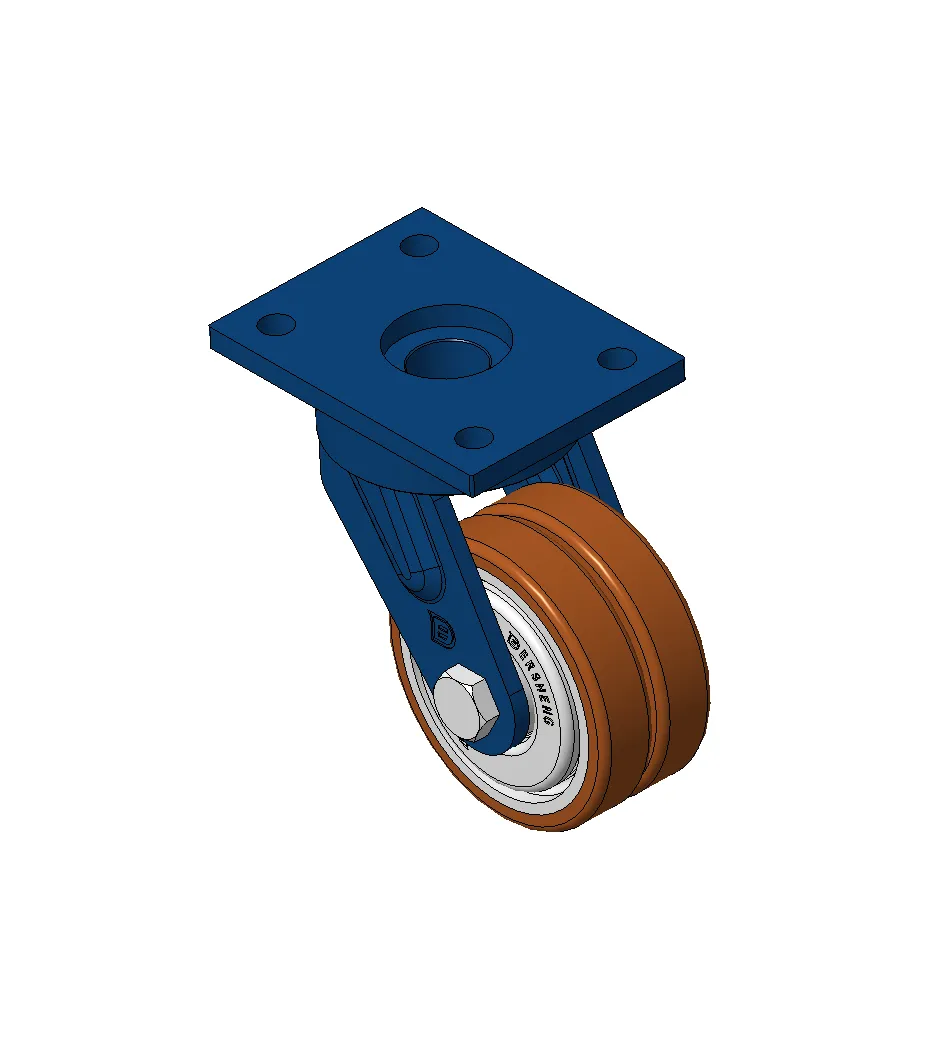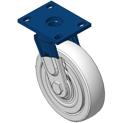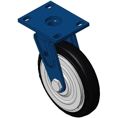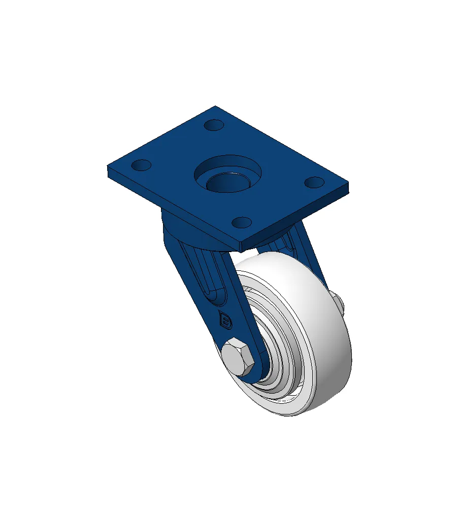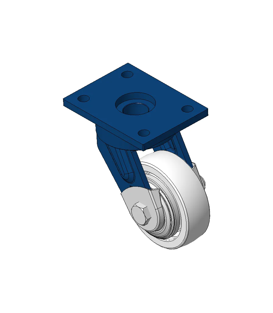 Bánh xe xoay với khung thép hàn và lớp sơn phủ màu xanh.