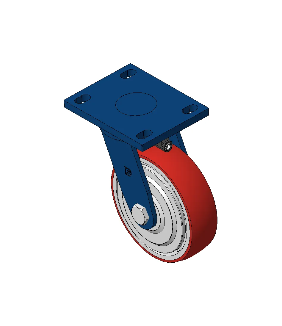 Lõi bánh xe bằng gang với gai polyurethane chất lượng cao, phay màu đỏ.