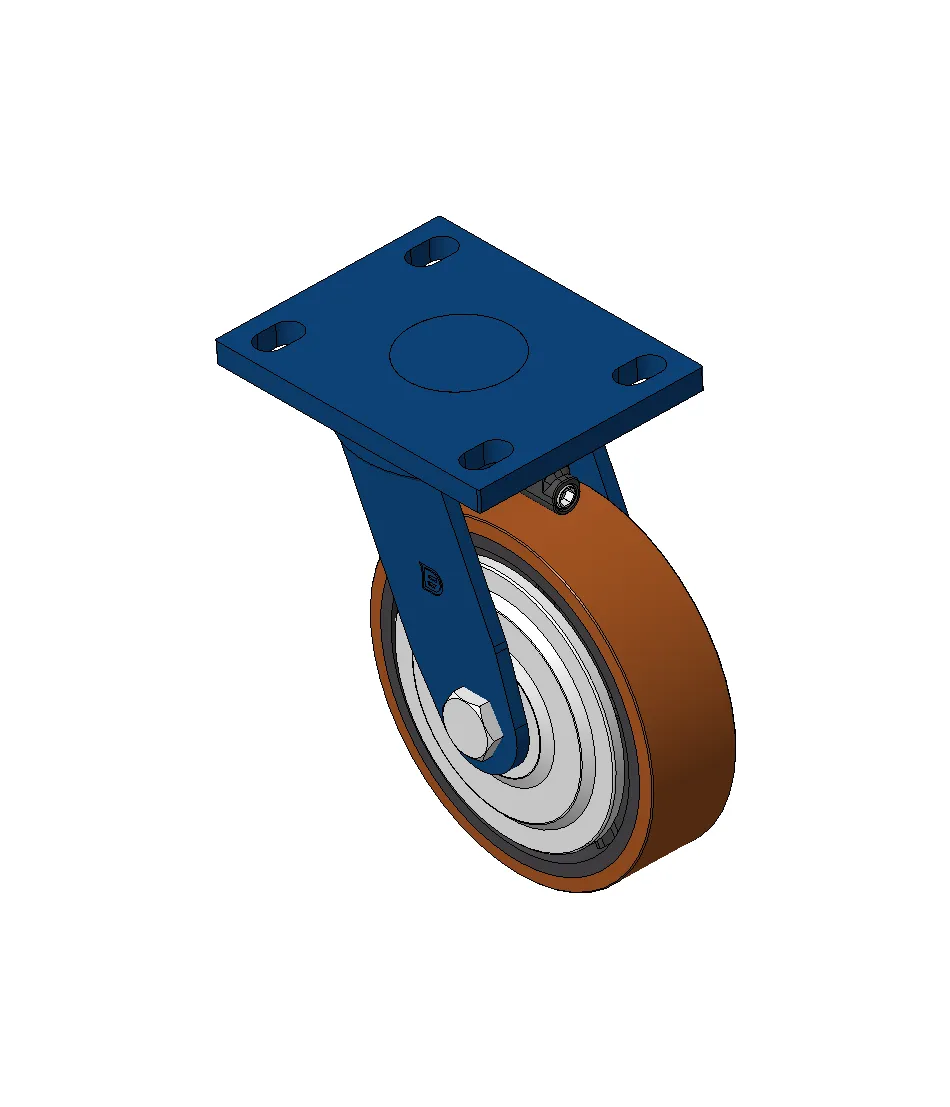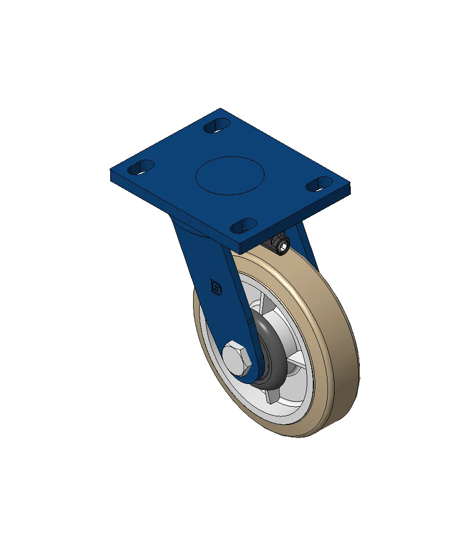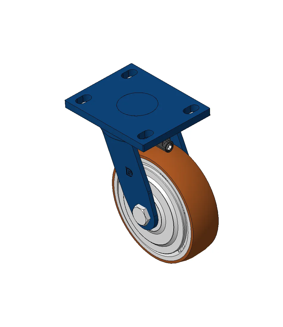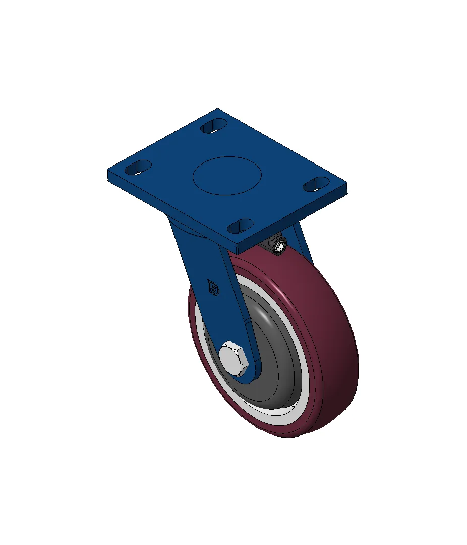 Bánh xe xoay với khung thép hàn, sơn phủ màu xanh.