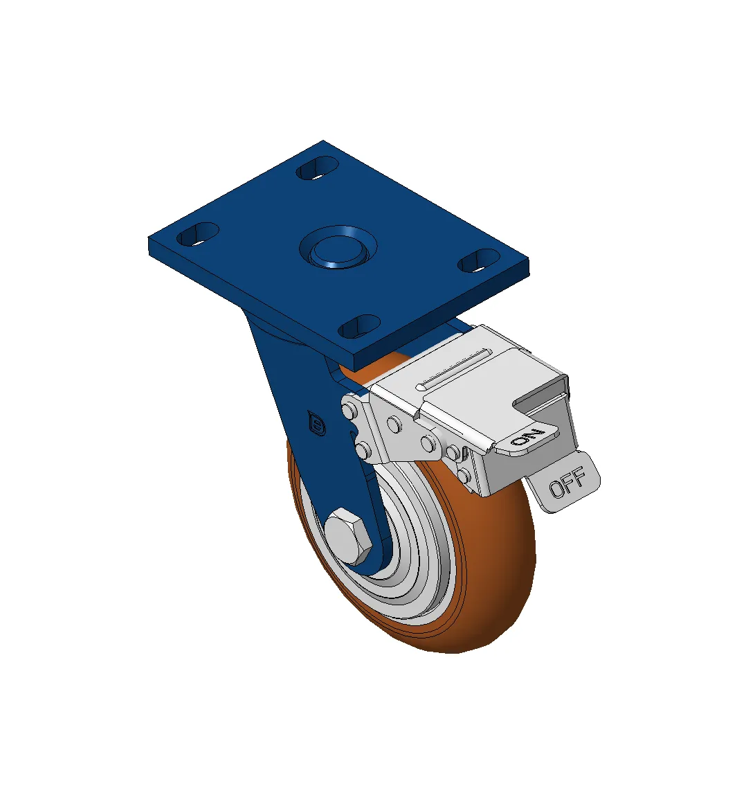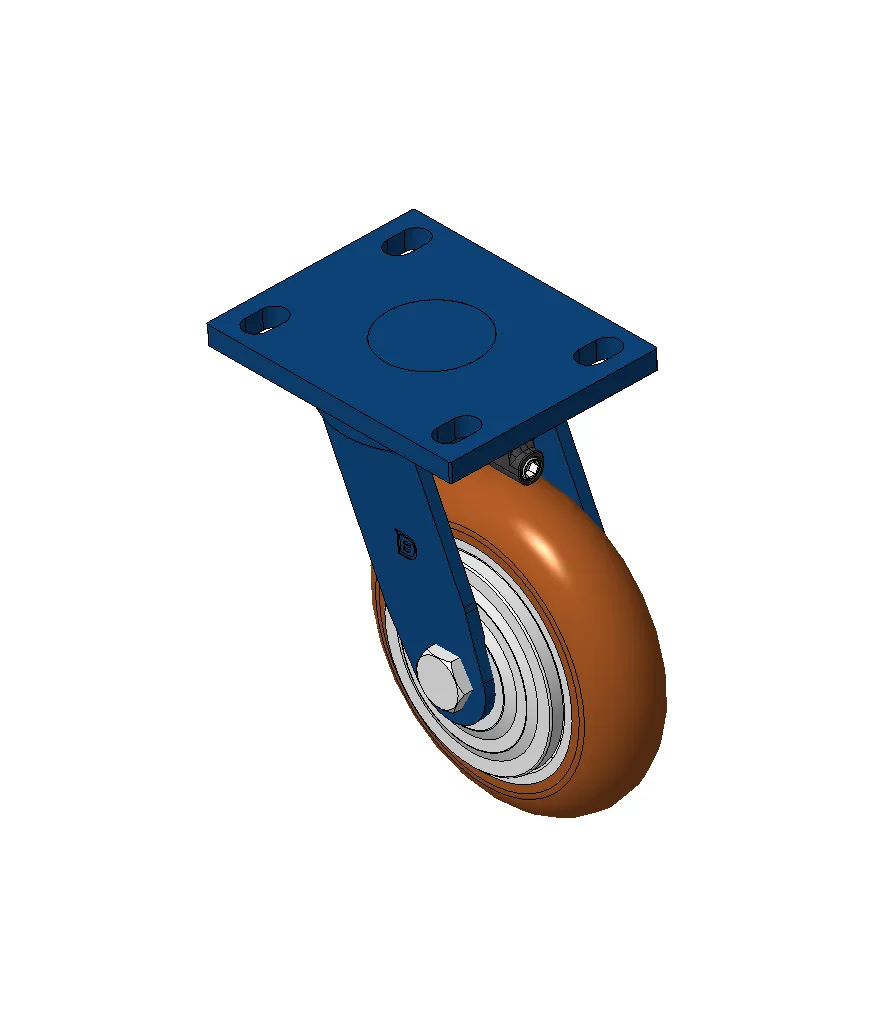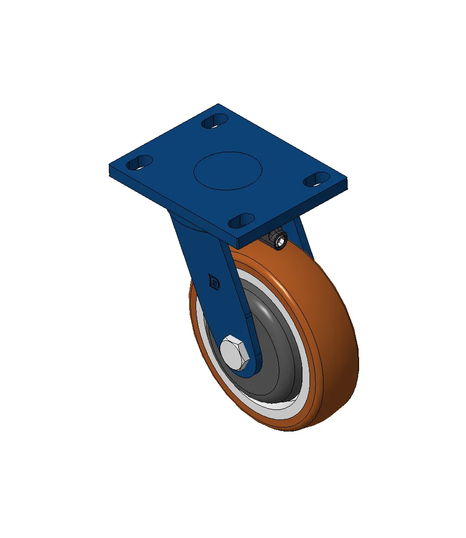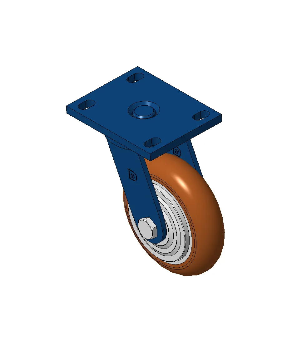 Bánh xe xoay với khung thép hàn, sơn phủ màu xanh.