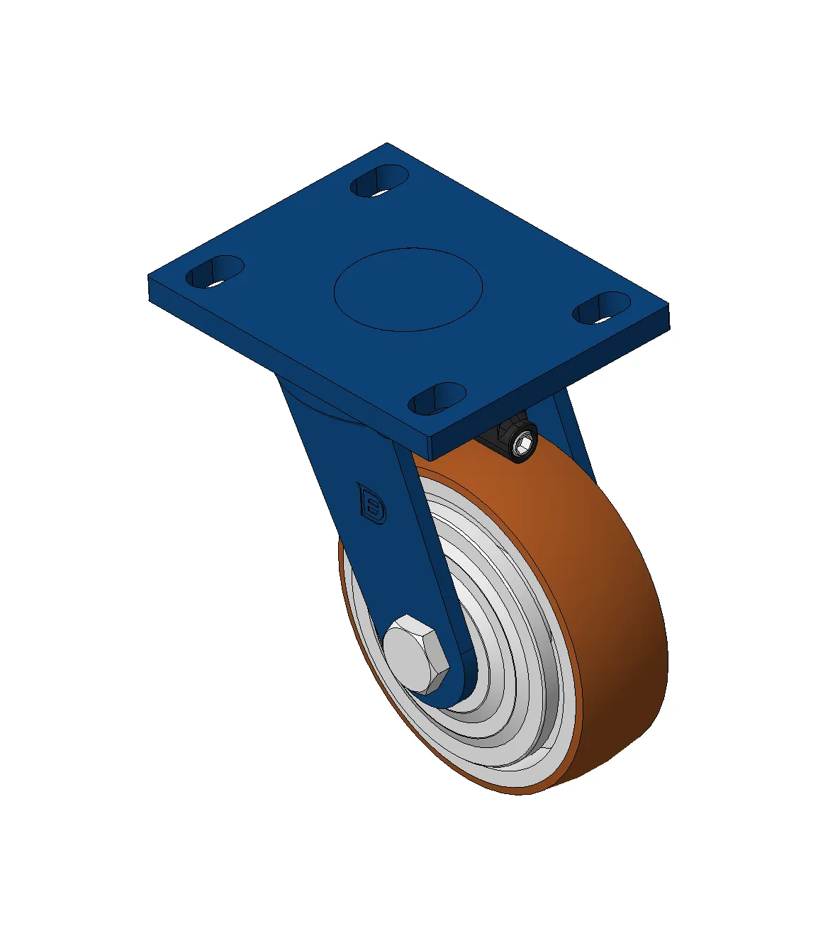 Lõi bánh xe làm bằng gang, bề mặt bánh xe bằng polyurethane chất lượng cao, phay màu nâu