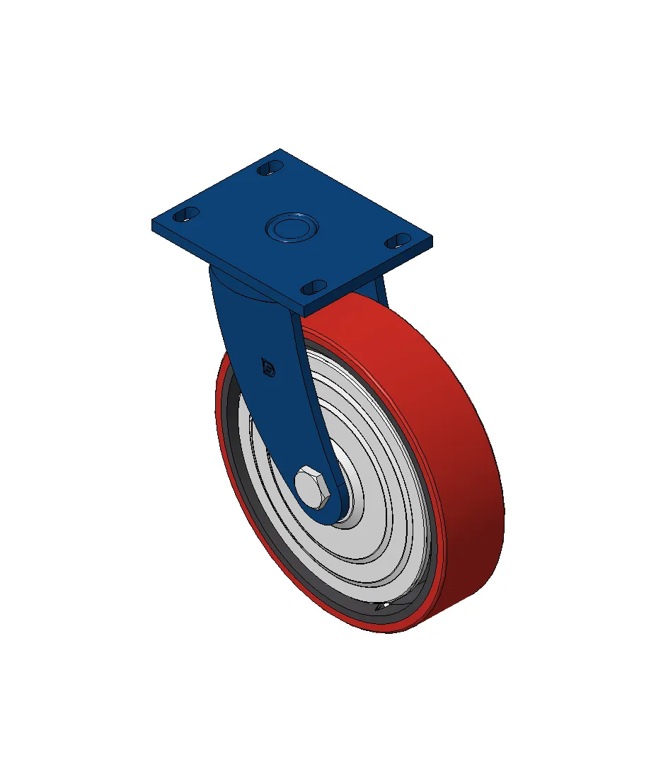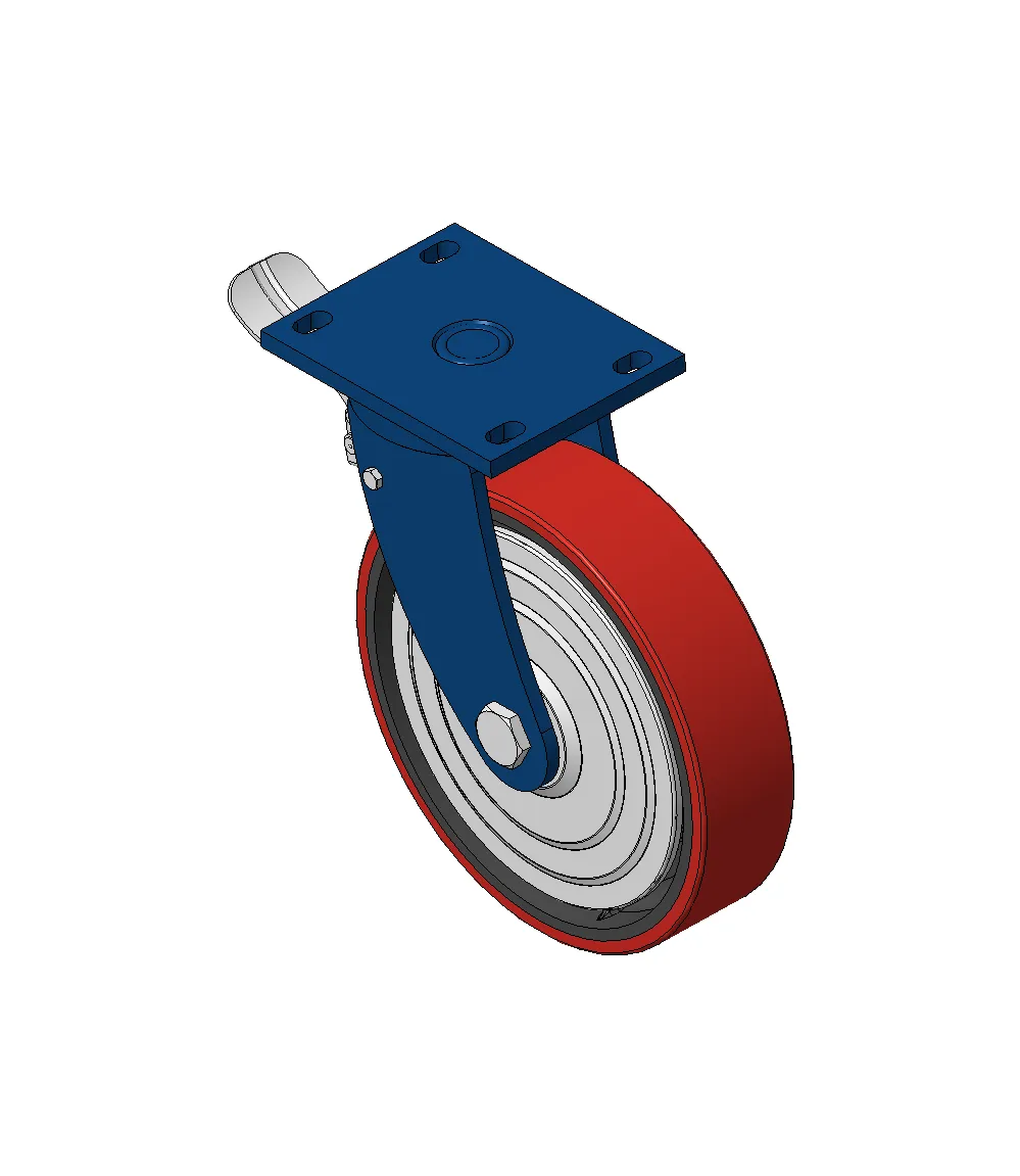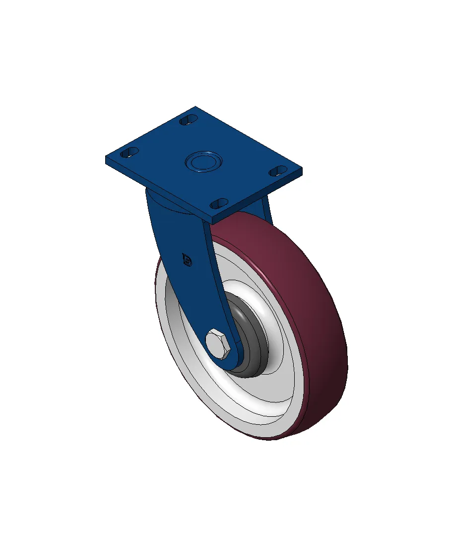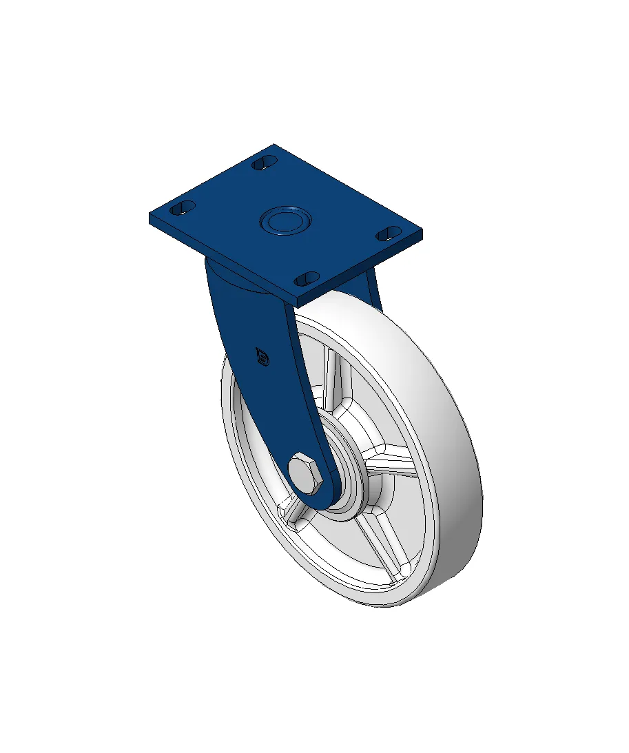 Bánh xe xoay với khung thép hàn, sơn phủ màu xanh.