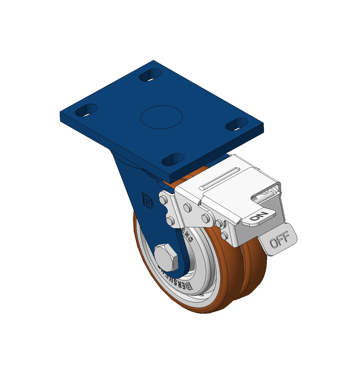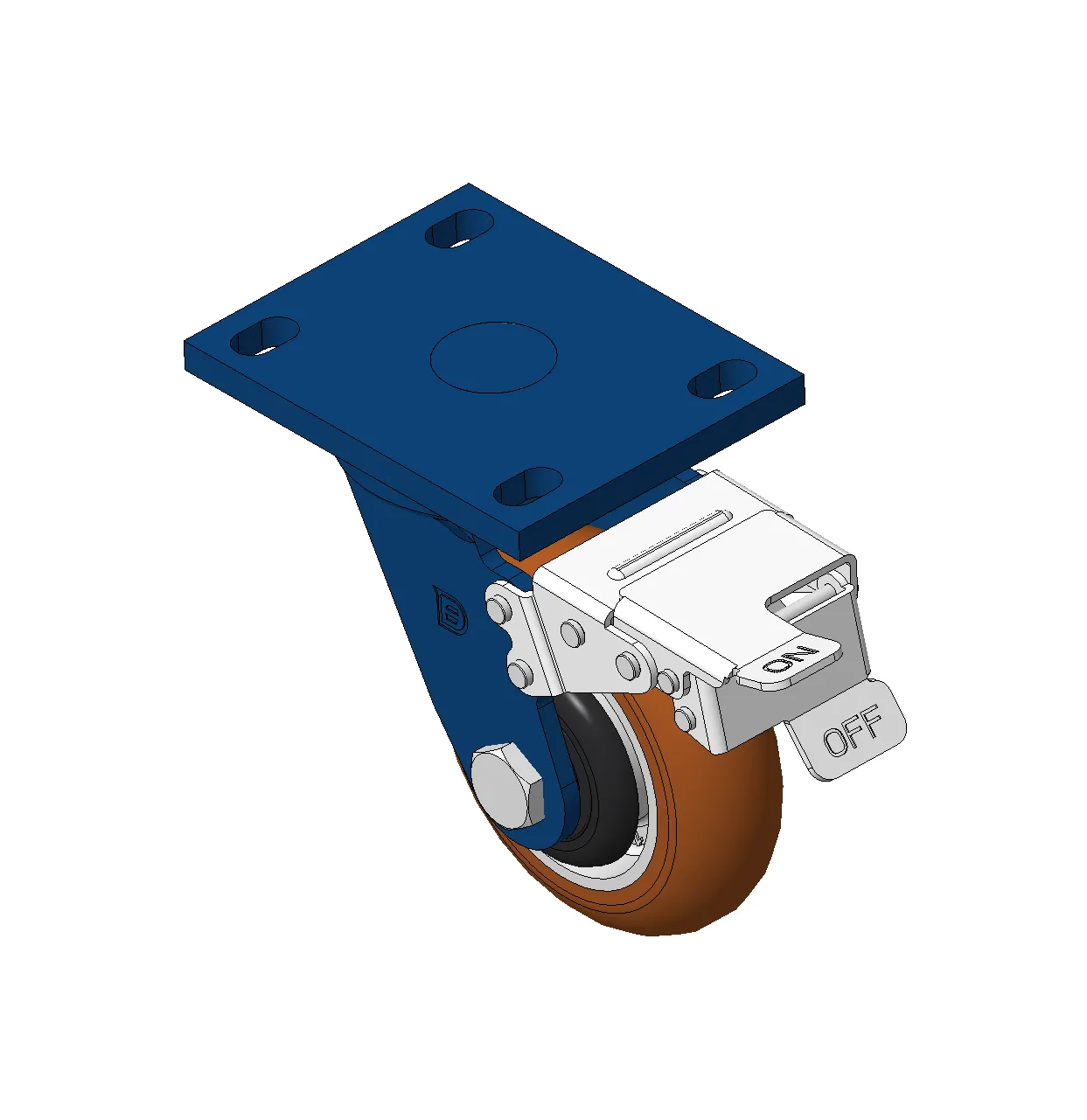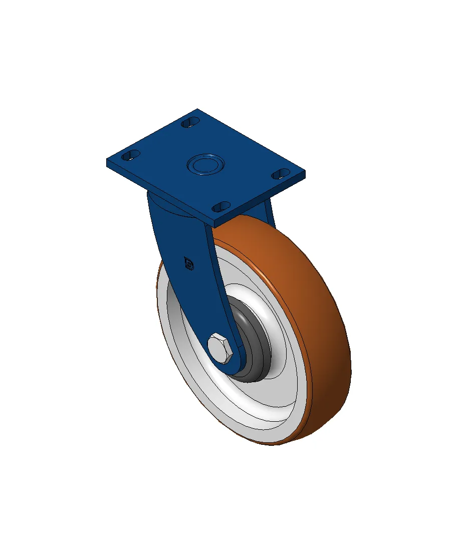 Bánh xe xoay với khung thép hàn, sơn phủ màu xanh.