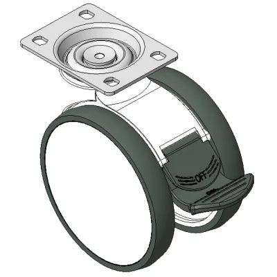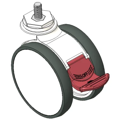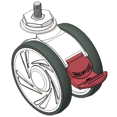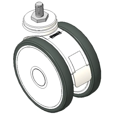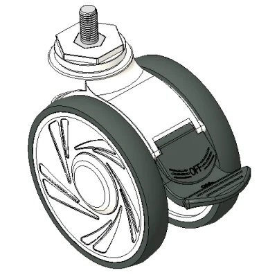 Bánh xe phanh kép, ren M12x25 Chân màu trắng được gia cố bằng polyamide Chống gỉ, chống ăn mòn, thẩm mỹ, tiết kiệm và quay trơn tru Lõi bánh xe bằng polypropylene chịu va đập, bề mặt bánh xe bằng chất đàn hồi nhiệt dẻo (TPR) Màu xám đậm, ổ bi bánh xe—ổ bi cầu chính xác