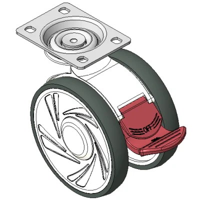 Bánh xe phanh định hướng dài chủ động, chân đế dập đinh tán vòng đệm—Ø28x30L