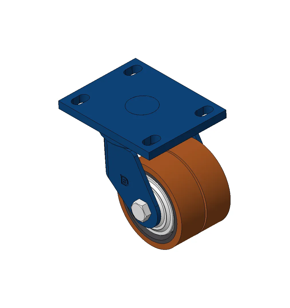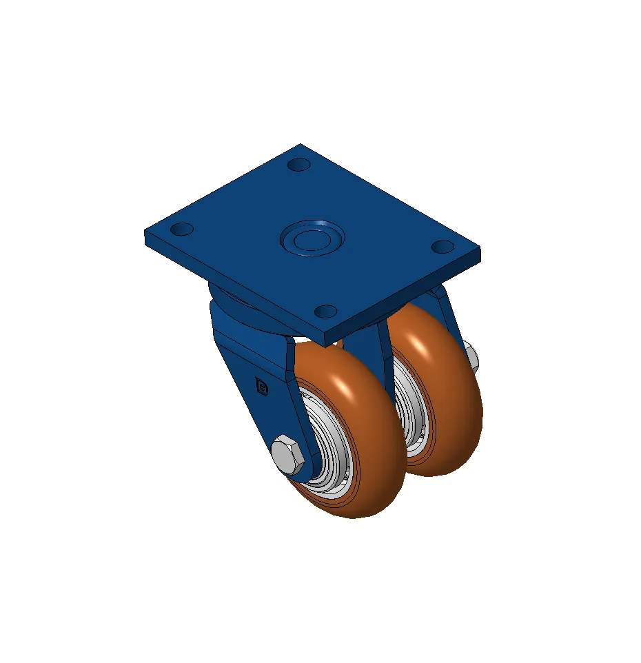 Bánh xe xoay với khung thép hàn, sơn phủ màu xanh.