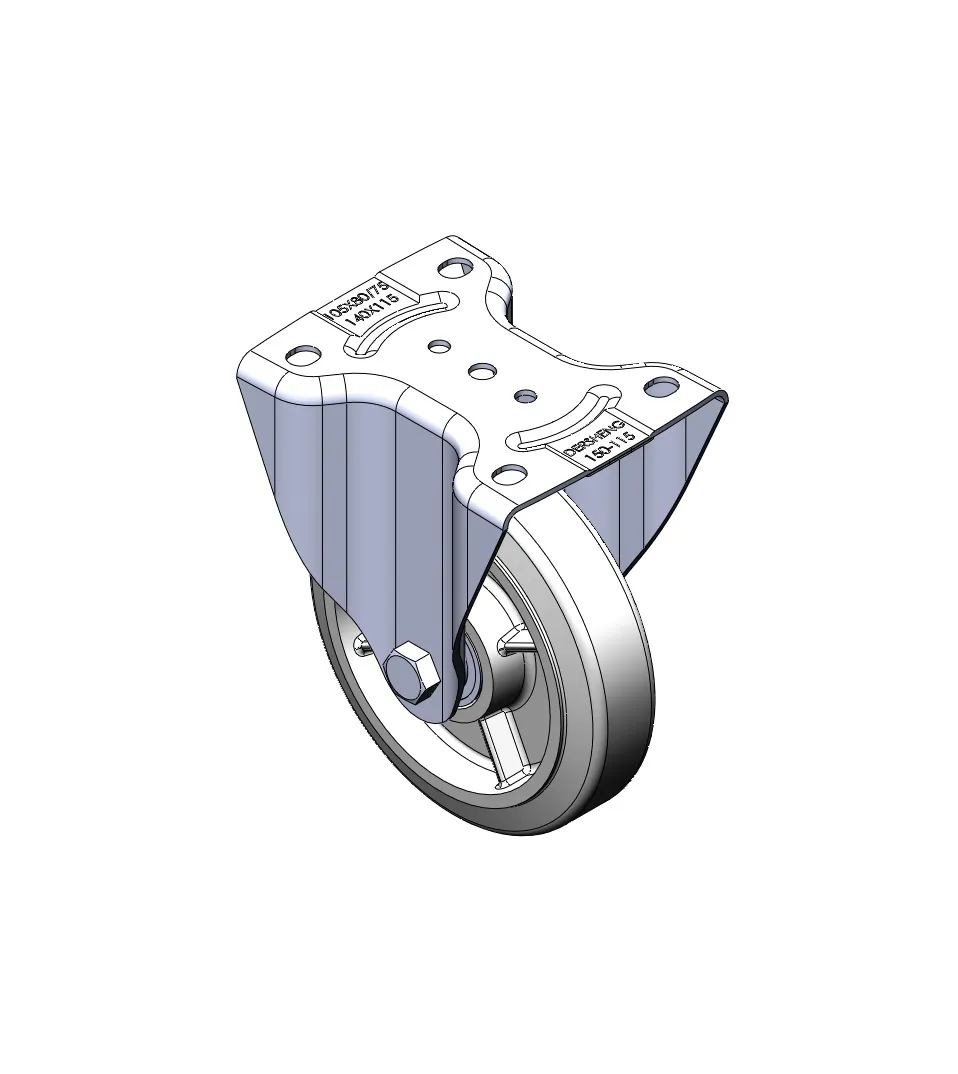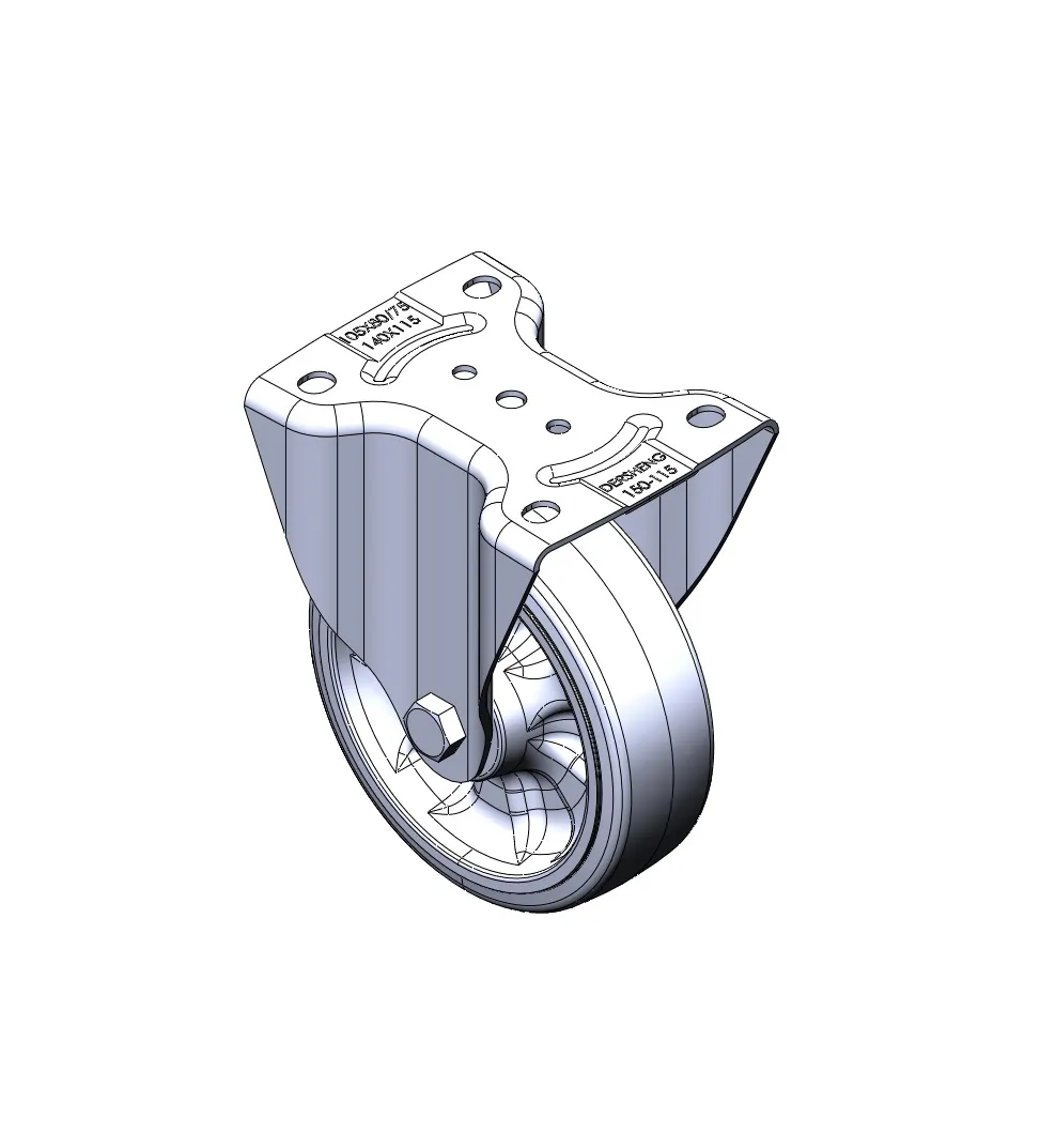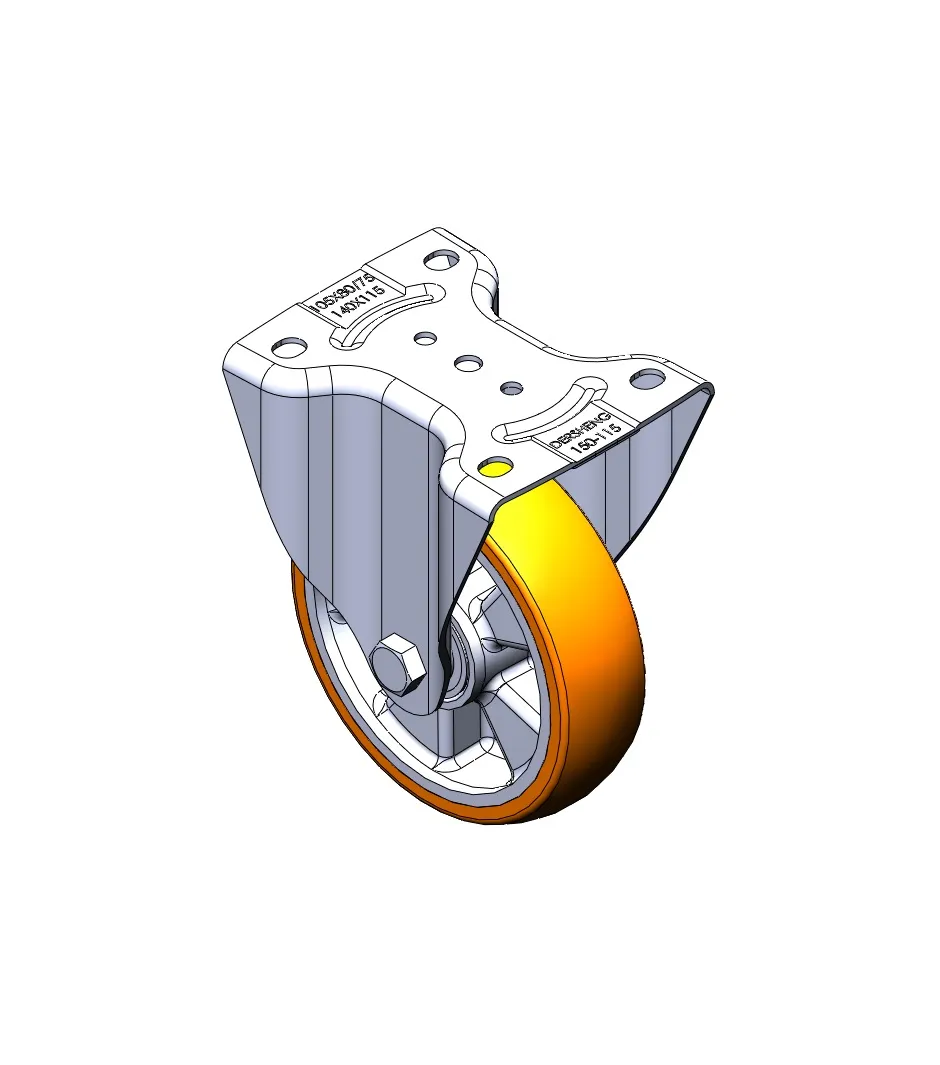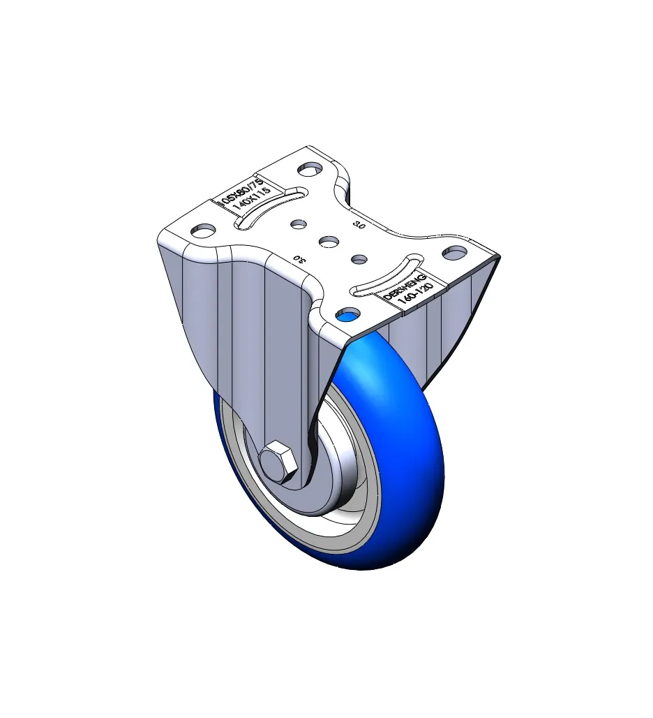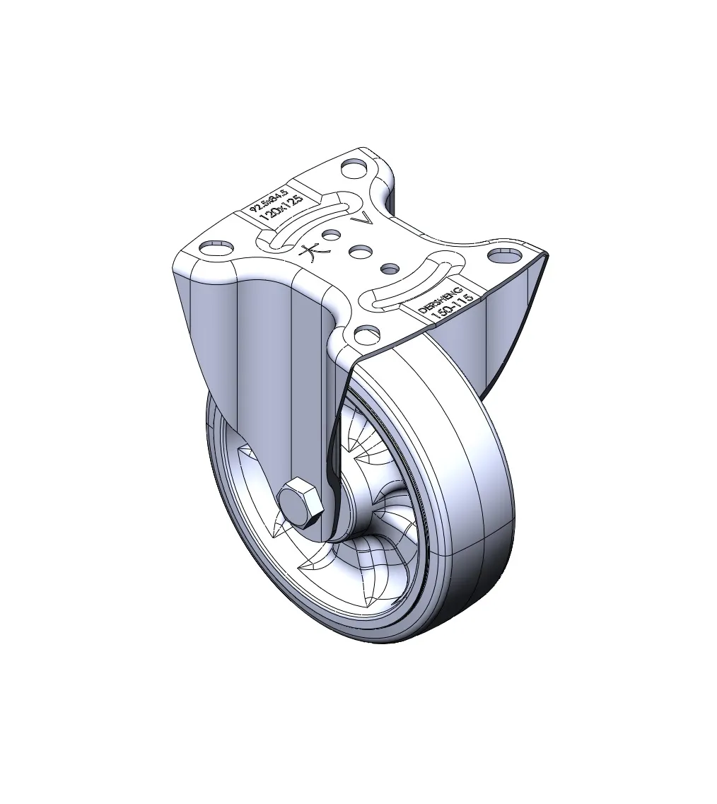 Bánh xe có phanh trước và hệ thống khóa. Chân đế được tán đinh và dập. Hoàn thiện mạ kẽm, lắp đế, nắp ống trung tâm bằng sắt lớn. Lõi bánh xe bằng polypropylen chống va đập với gai cao su đàn hồi chất lượng cao. Bánh xe ống trung tâm màu đen.