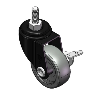 Được trang bị phanh bên hông (bánh xe) và hệ thống khóa bánh xe. Chân đế được dập ren với lõi đinh tán. M10-P1.5