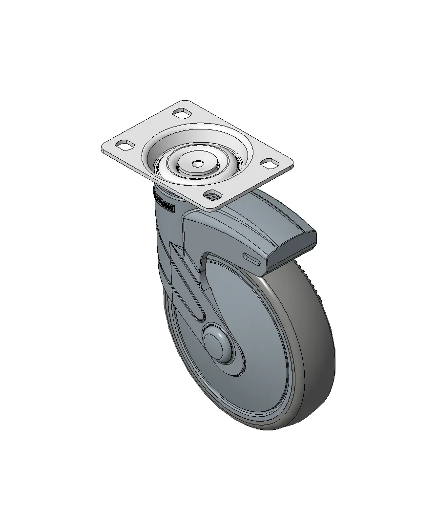 Bánh xe cố định, đế cao cấp—75x45, đế lỗ góc Chân màu xanh xám làm bằng vật liệu polyamide gia cố, lắp đế Chống gỉ, chống ăn mòn, thẩm mỹ, tiết kiệm và xoay linh hoạt Lõi bánh xe bằng polypropylene chống va đập, bề mặt bánh xe bằng nhựa nhiệt dẻo đàn hồi (TPR) Vòng bi bánh xe màu xám đậm—vòng bi chính xác