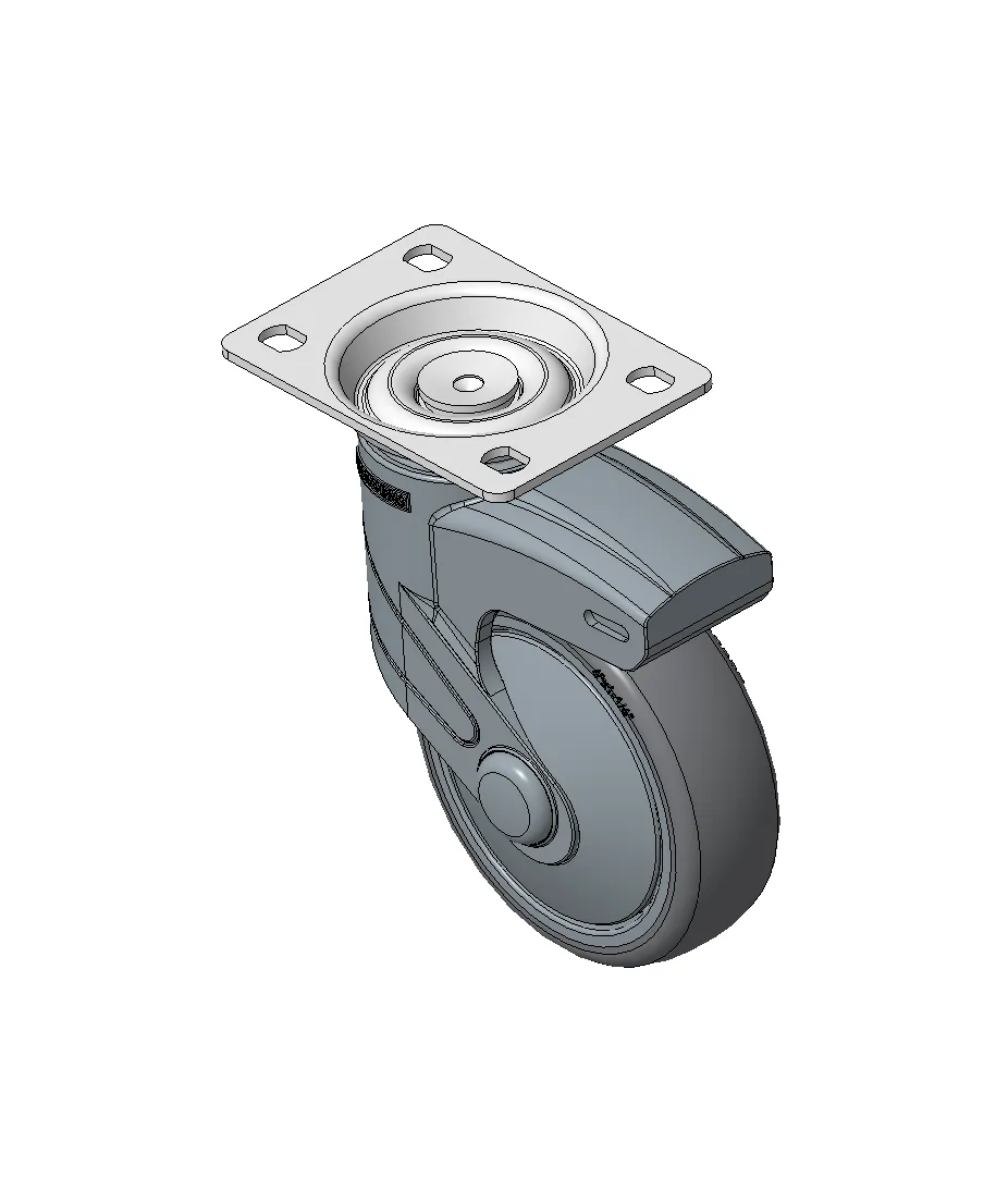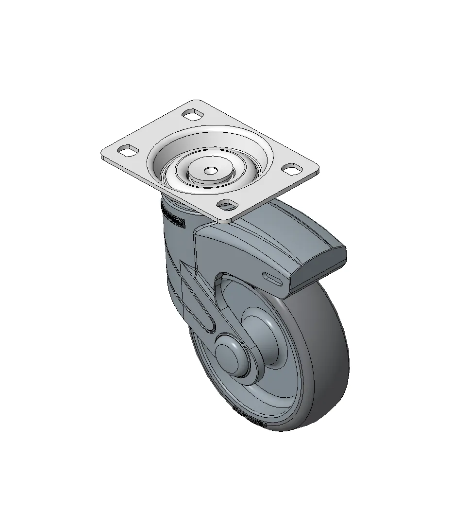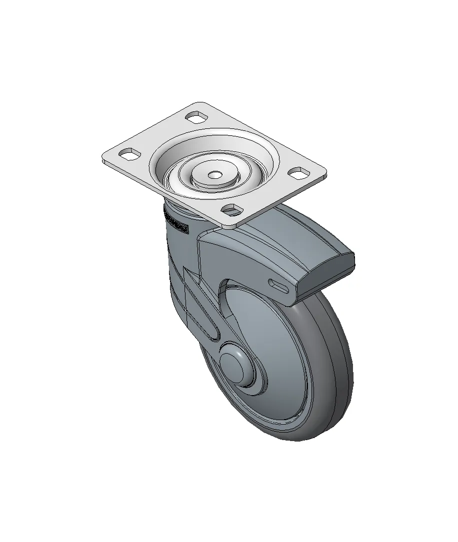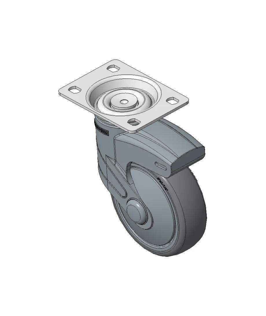 Bánh xe cố định, đế cao cấp—75x45, đế lỗ góc Chân màu xanh xám làm bằng vật liệu polyamide gia cố, lắp đế Chống gỉ, chống ăn mòn, thẩm mỹ, tiết kiệm và cho phép xoay linh hoạt Lõi bánh xe bằng polypropylene chống va đập, bề mặt bánh xe bằng nhựa nhiệt dẻo đàn hồi (TPR) Vòng bi bánh xe màu xám đậm—vòng bi chính xác