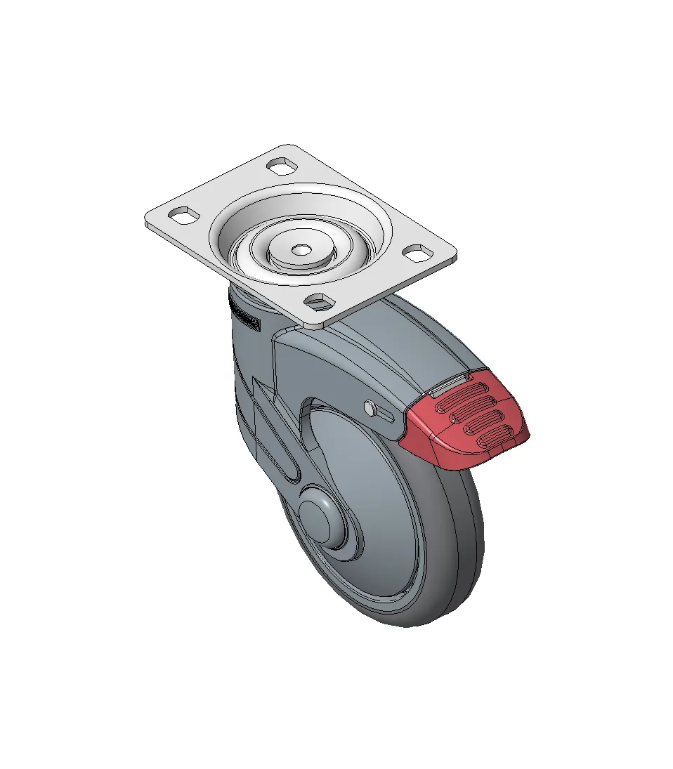 Bánh xe có hệ thống khóa phanh kép, đế cao cấp—75x45, đế lỗ góc