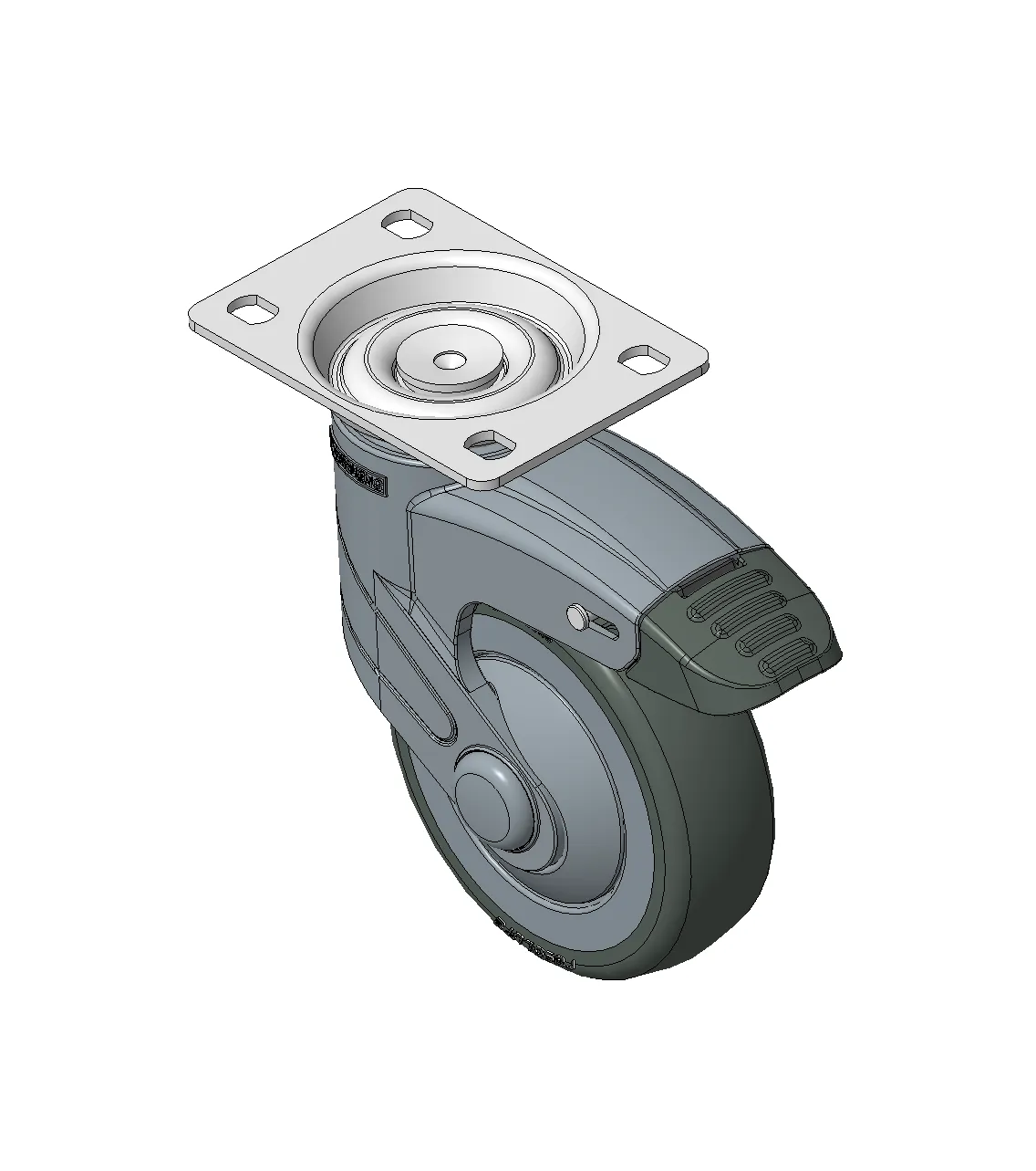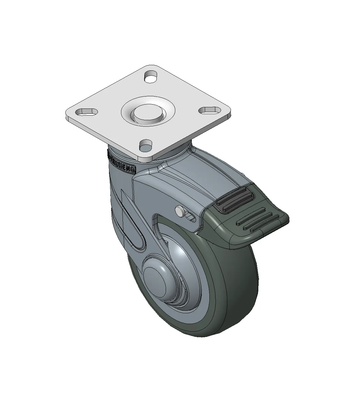 Bánh xe với hệ thống khóa kép dài, đế cao cấp—đế lỗ góc 42,5x42,5