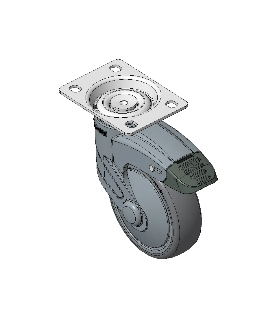 Bánh xe có hệ thống khóa phanh kép, đế cao cấp—75x45, đế lỗ góc