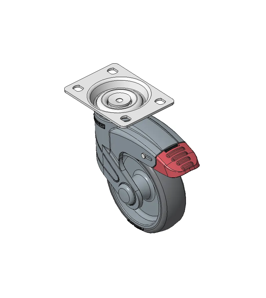 Bánh xe có hệ thống khóa phanh kép, đế cao cấp—75x45, đế lỗ góc