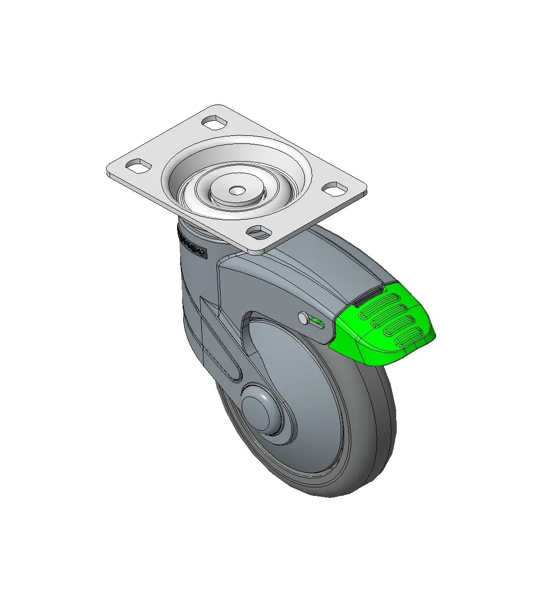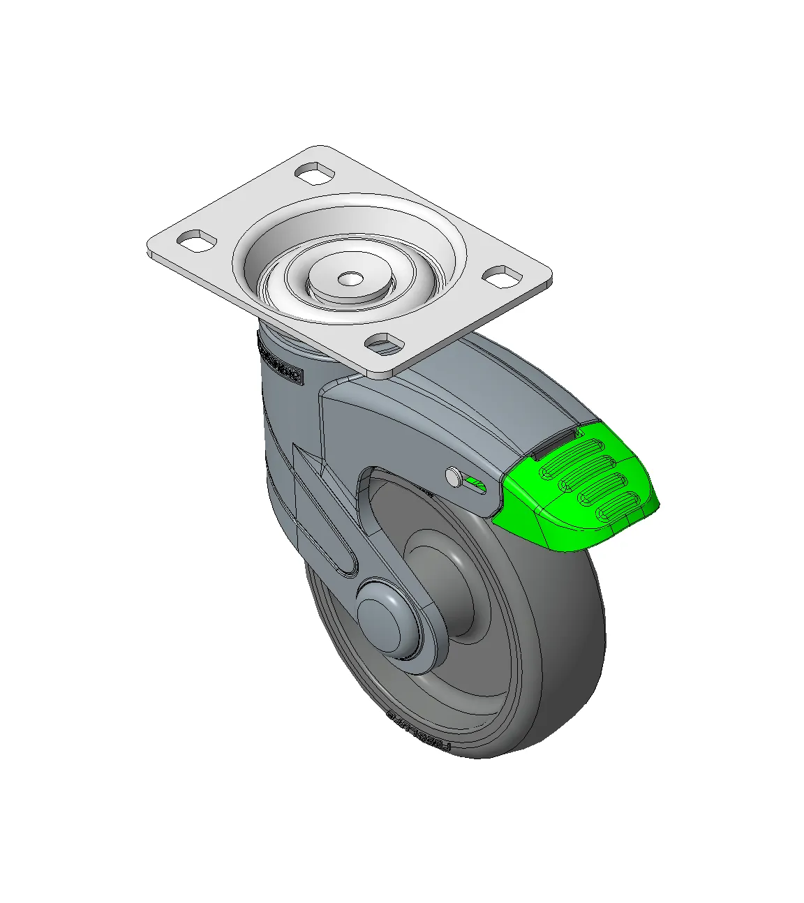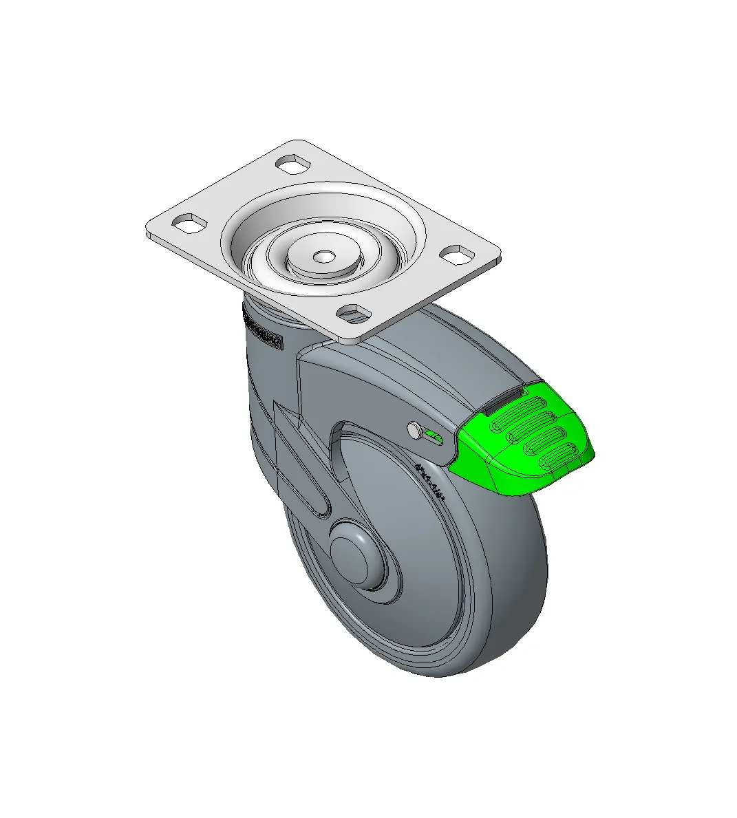 Bánh xe với hệ thống khóa phanh định hướng dài, đế cao cấp—đế lỗ góc 75x45