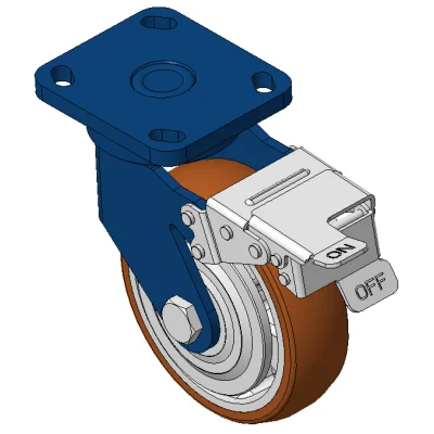 Bánh xe xoay với khung thép hàn, sơn phủ màu xanh