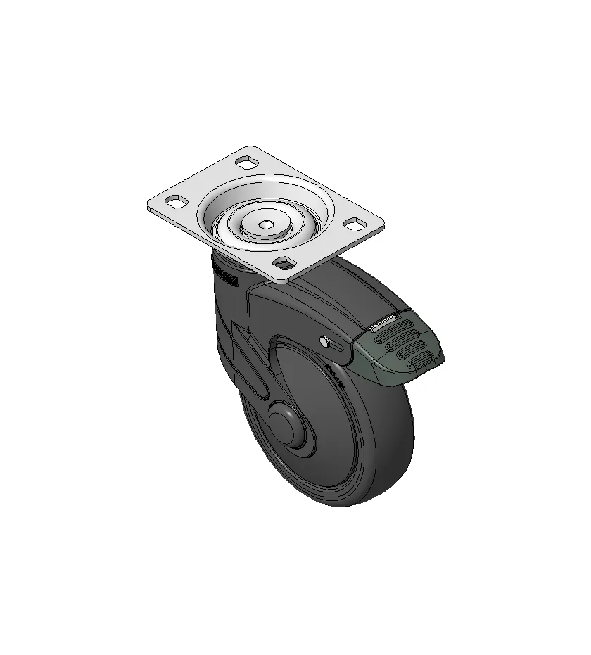 Bánh xe có hệ thống khóa phanh kép, đế lỗ góc 75x45