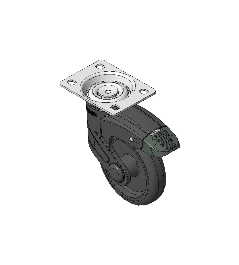 Bánh xe có hệ thống khóa phanh kép, đế lỗ góc 75x45
