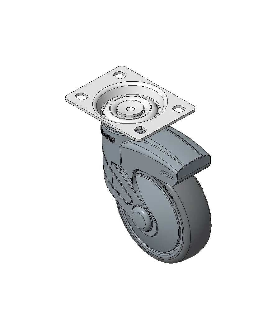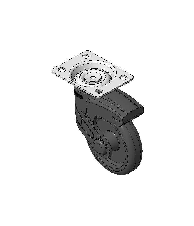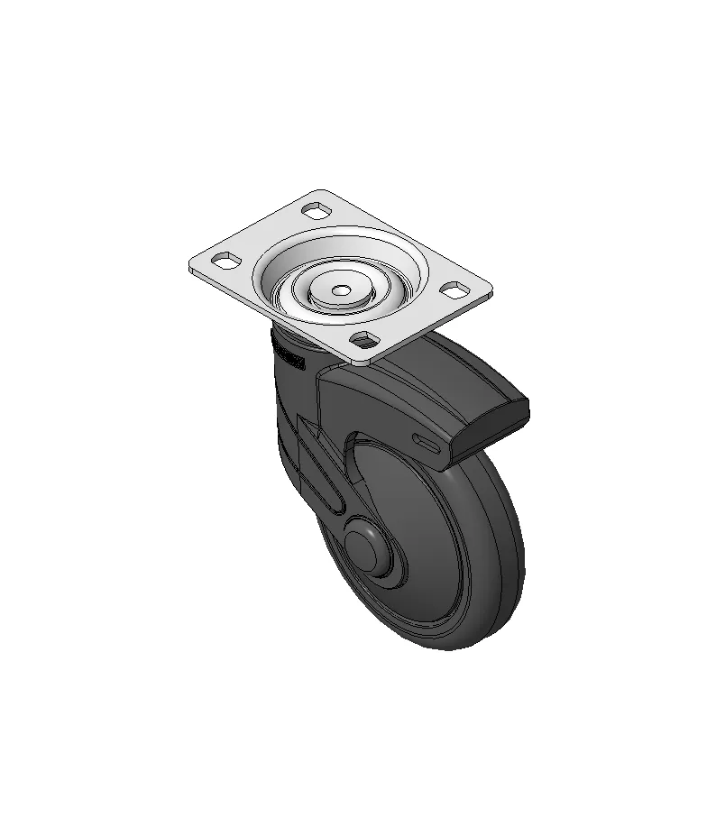 Bánh xe cố định, đế cao cấp—đế lỗ góc 75x45 Chân màu xanh xám làm bằng polyamide gia cố, lắp đế Chống gỉ, chống ăn mòn, thẩm mỹ, tiết kiệm và xoay linh hoạt Lõi bánh xe bằng polypropylene chống va đập, bề mặt bánh xe bằng nhựa nhiệt dẻo đàn hồi (TPR) Bánh xe màu xám đậm—loại ống giữa